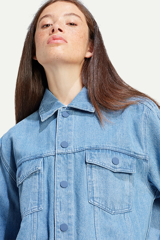 ג'קט ג'ינס היסטרי שנוצר בשיתוף פעולה עם קסניה שניידר המעצבת האוקראינית מקייב שהיא שם דבר בעולם האופנה. מדובר בז'קט ג'ינס קלאסי עם גזרה יפהפיה וכפתרת טיקטיקים כחולה. השלימי את הלוק עם מכנסיים מגניבים וצאי לקצור מחמאות.
