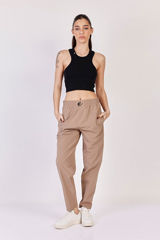מכנסי אינטרלוק ארוכים לנשים בצבע בז'