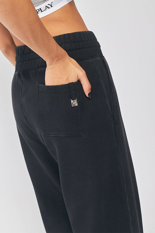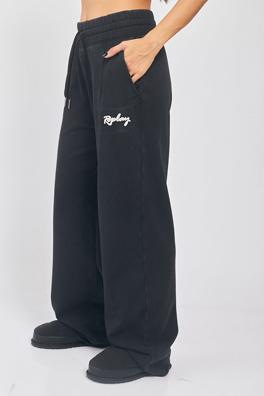 מכנסי טרנינג ישרים בגזרה רחבה. למכנסיים כיסים צידיים וכיס אחורי.