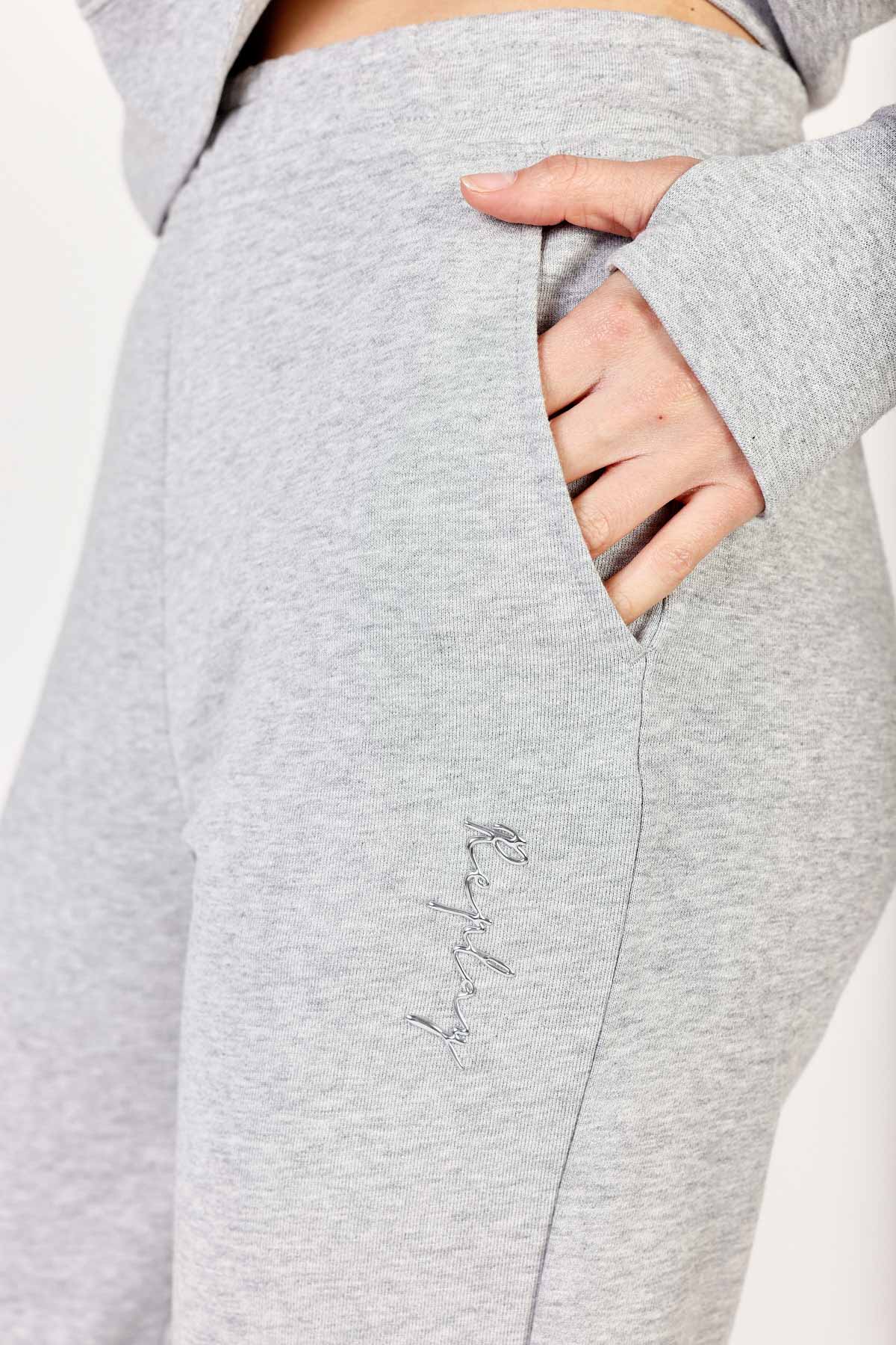 מכנסי טרנינג ארוכים עם מותן אלסטית וכיסים צידיים. למכנסיים מכפלות אלסטיות.