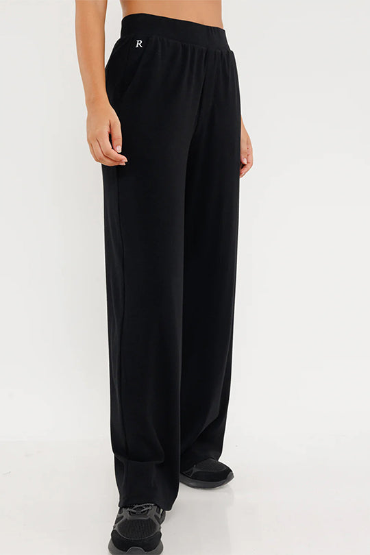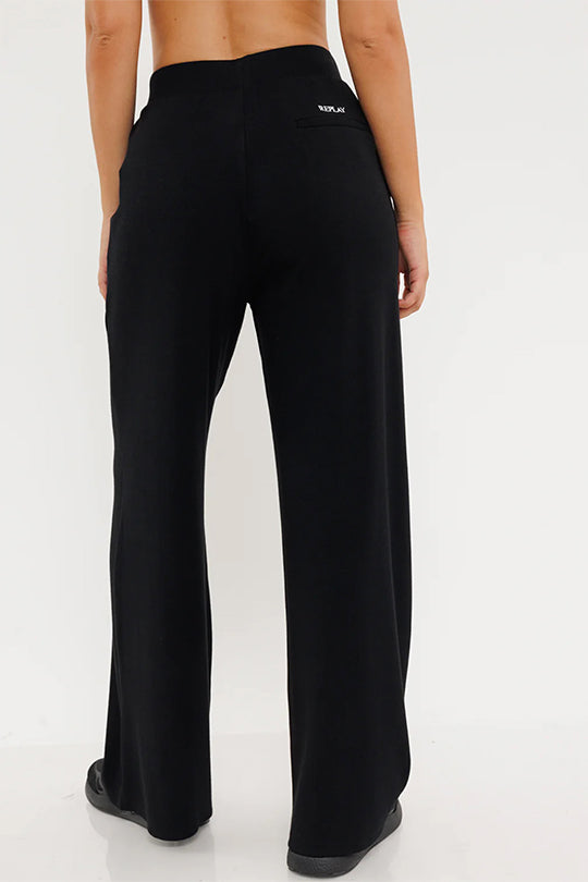מכנסיים רחבים ארוכים לנשים בצבע שחור, המשלבים נוחות עם סטייל עדכני. עשויים מבד רך ונעים המבטיח תחושה נעימה לאורך כל היום. העיצוב הרחב והזורם מתאים לכל הופעה יומיומית או אלגנטית, ומשתלב נהדר עם חולצות טי או גופיות למראה קז'ואל או עם חולצות מחויטות ללוק ערב מרשים.
