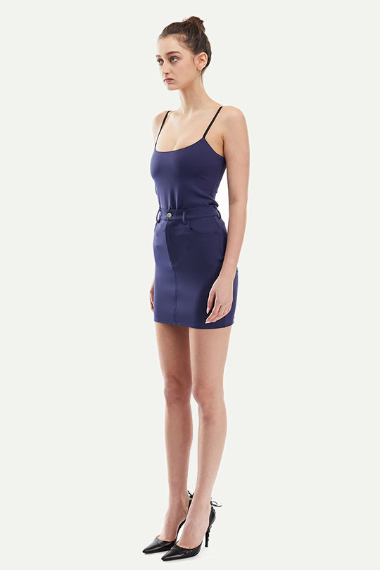 חצאית מיני בגזרה גבוהה בצבע שחור, עם כפתור קדמי, רוכסן וחגורת מותן עם לולאות. כיסים קדמיים קלאסיים וגימור חלק ונקי מעניקים לה לוק מחויט אך יומיומי. משתלבת מושלם עם טופ צמוד או חולצה מכופתרת – ליצירת טוטאל לוק מדויק.