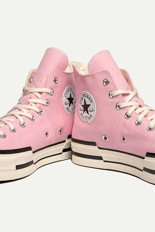 | נעלי סניקרס גבוהות Chuck 70 Plus בצבע ורוד בהיר. פרטים מעוותים וקווים אסימטריים ממציאים מחדש את עיצוב Chuck 70 Premium, עדכון בולט של קלאסיקה נצחית. עיצוב זה ניכר בתכונות העתידניות המיוחדות שלו. טלאי מחולק עם לוגו צ'אק טיילור בקרסול ממשיך את הקו העיצובי ושרוכים שטוחים בעיניות מתכת עגולות בגווני כסף משלימות מראה מנוגד. סוליית גומי עם אפקט חיצוני מפוצל ותיקון לוגו בגב ריפוד פרימיום משדר קלילות אולטימטיבית. הצבע הורוד מככב העונה בשילובים עם גוונים של כחול ויוצר מראה מרענן. מומלץ לנסות זאת בבית. |