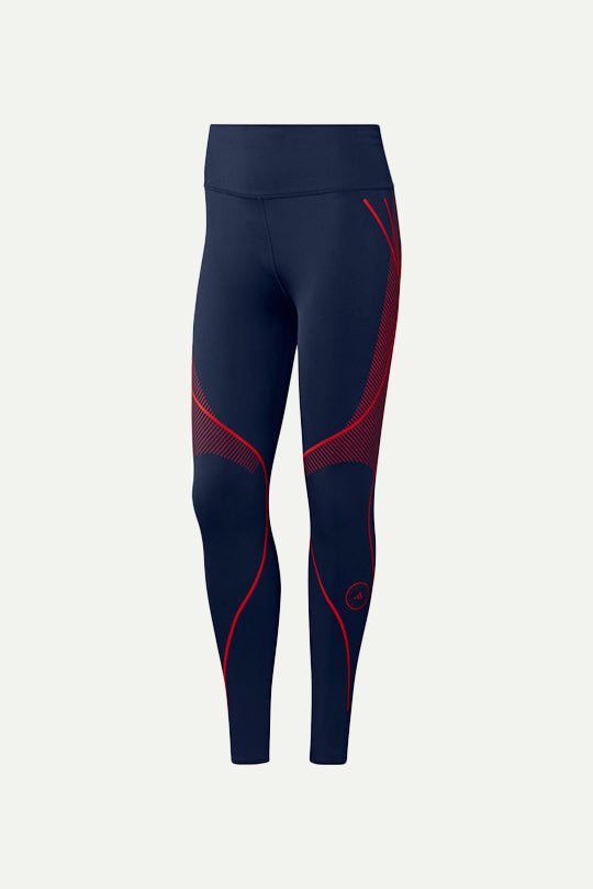 טייץ ספורטיבי מבית adidas בשיתוף Stella McCartney, בגוון כחול כהה קלאסי עם דיטיילים אדומים דינמיים. גזרה צמודה ונוחה, עם מותן גבוהה לתמיכה מרבית ובד נושם שמתאים לאימונים אינטנסיביים. הבחירה המושלמת ללוק אופנתי ומלא סטייל תוך כדי תנועה.