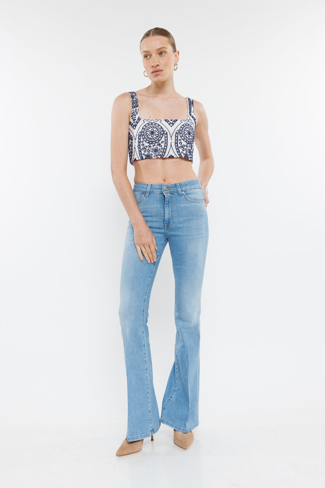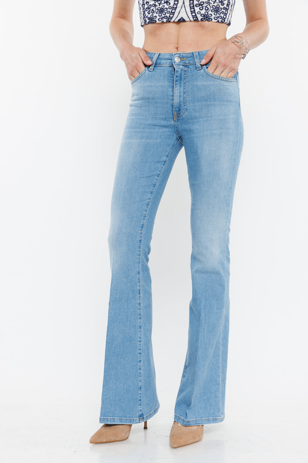אין כמו לקנות ג'ינס טוב שיושב מושלם ומחמיא לגוף שלך. הכירי את המותג האיטלקי ויקולו שמציע מגוון ג'ינסים בגזרות היסטריות. לדגם זה גזרה מתרחבת מהממת. השלימי את הלוק עם סנדלי עקב שפיץ למראה רגל מאורכת.
