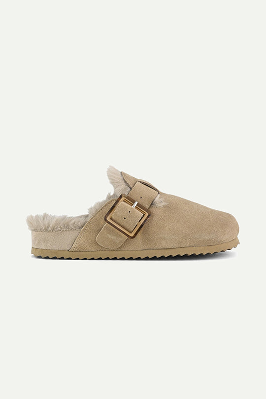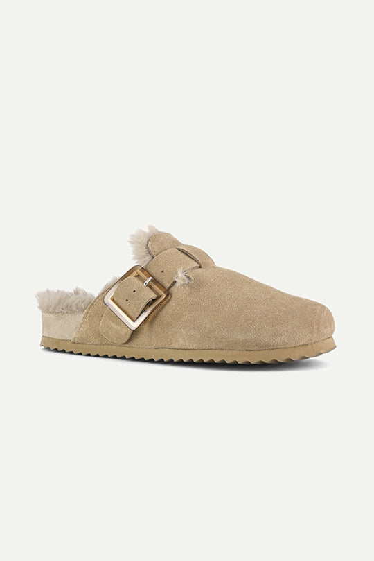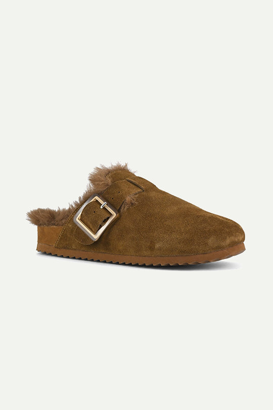 כפכפים סגורים עשויים עור הפוך (Suede) עם פרווה רכה לחמימות ונוחות מירבית. צבע הקוניאק העמוק ואבזם מתכוונן מוסיפים טאץ' ייחודי שמשדרג כל לוק. כפכפים מושלמים לימים קרירים, עם שילוב של סטייל ופונקציונליות.