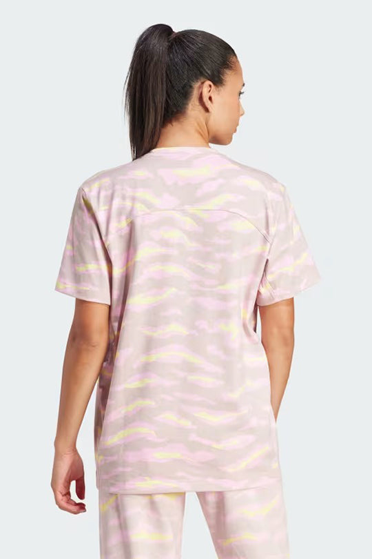טי שירט נעימה בגזרה משוחררת עם פרינט היסטרי. לאימונים או סתם עם ג'ינס. סטייל על חלל. לחולצה זאת גזרה רחבה עם מפתח צוואר עגול גבוה ושרוולים קצרים.