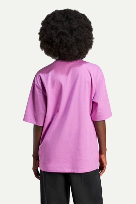 טי שירט קצרה בצללית אוברסייז רחבה. לחולצה אטיטיוד סופר נינוח עם קריצה של לוגו קטן בחזית וצבע ורוד סגלגל בסגנון ברבי אבל הכי רחוק מברבי וייז. גו ביג אור גו הום מה שנקרא, השלימי את הלוק עם מכנסיים רחבים ותבלבלי אותם עם נעלי שפיץ שטוחות וקלאץ' קטן בהכנס.
