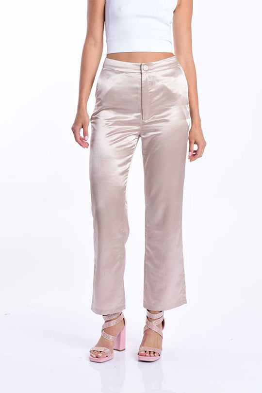 מכנסיים מתרחבים עם כיסים צידיים וכיס אחורי. למכנסיים גזרה מתרחבת.