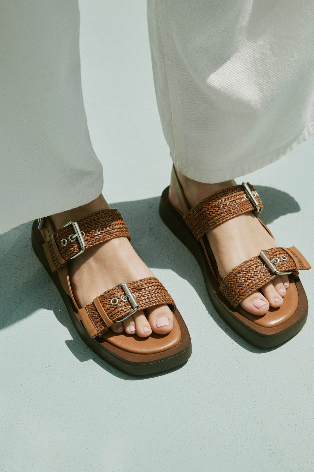 סוליה שטוחה ונוחה, סגירה מתכווננת בקרסול – הבחירה המושלמת ללוק קיץ אלגנטי אך קליל.
