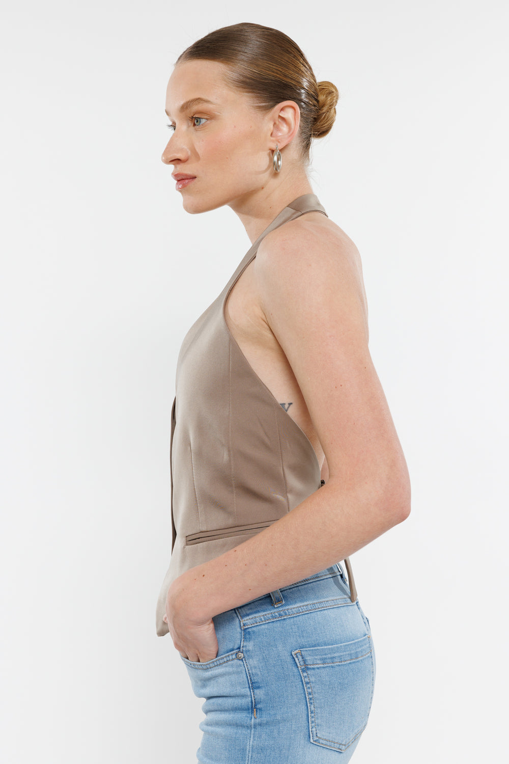 לוסט ג'וי המהמם של משכית גזרת דאבליו קלאסית עם גב חשוף מהפנט הנסגר בחגורה עם אבזם מתכתי, מחשוף וי וסגירת כפתרה בחזית. השלימי את הלוק עם מכנסיים מחוייטים תואמים או עם ג'ינס.