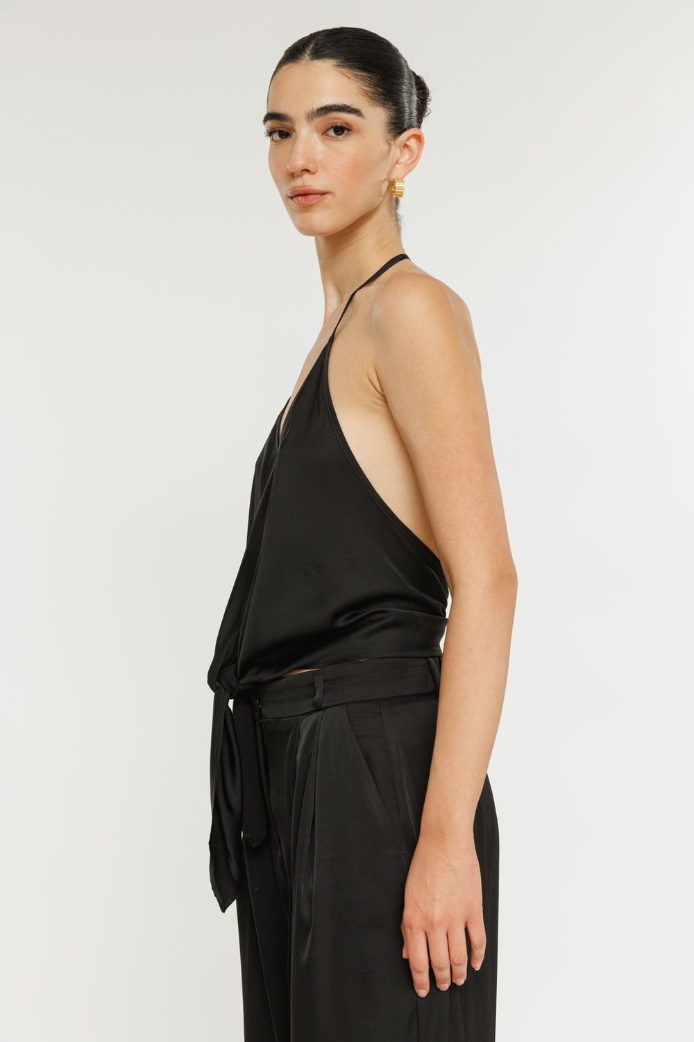 גופיית קולר מושלמת של המותג הישראלי המוביל, משכית. לגופיה קשירה בגב וקשירה בחזית. מדובר בפריט סופר שיקי עם קריצה אלגנטית. השלימי את הלוק עם מכנסיים תואמים ועגילי חישוק.