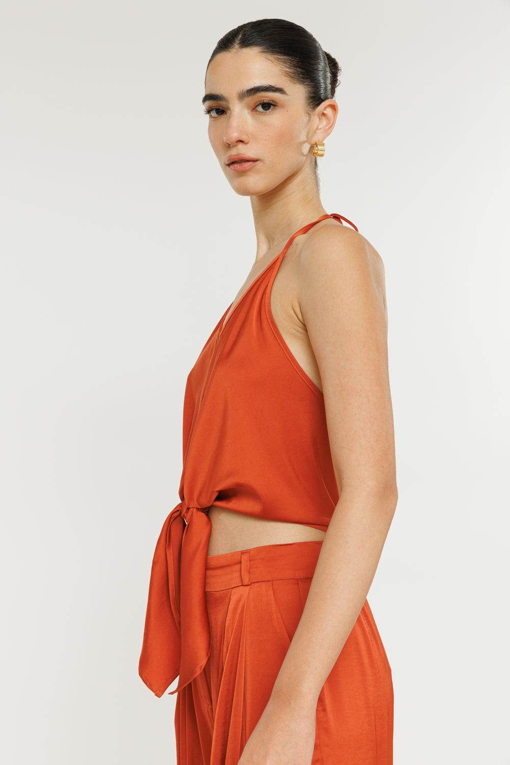 גופיית קולר עם קשירה Rosie בצבע כתום