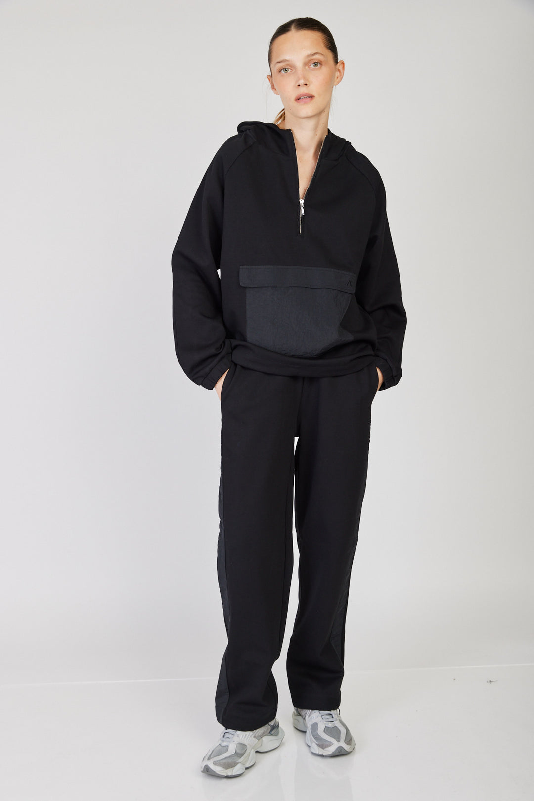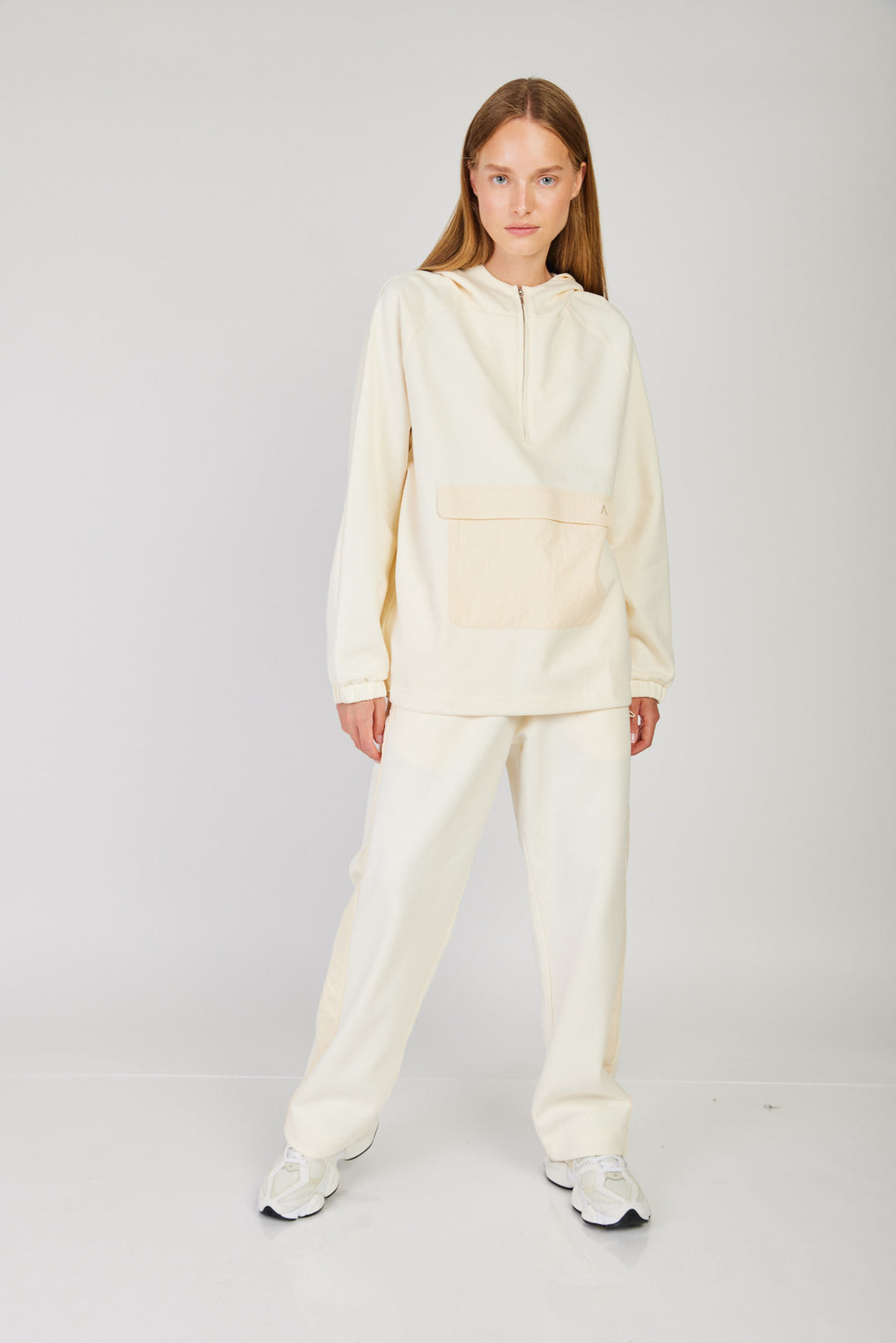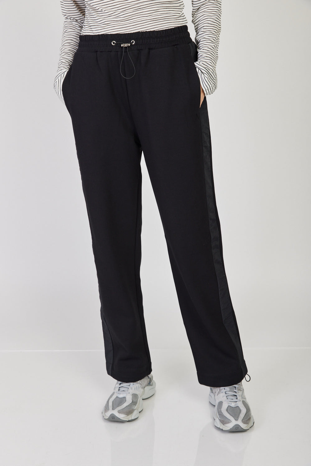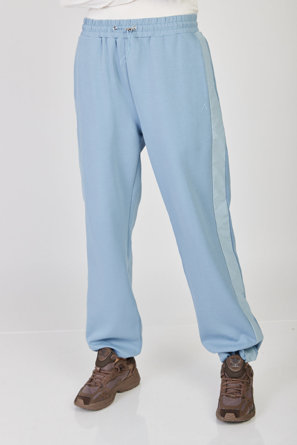 מכנסי טרנינג ארוכים בגזרה רחבה של מותג בגדי הבייסיק הבלעדי לרזילי, טרה. למכנסיים מותן אלסטית בשילוב צינור גומי דק עם מעצור וכיסים צידיים. פריט זה עשוי מבדים סינתטיים ומשלב פסים רחבים בצידי הרגל העשויים מבד ניילון.