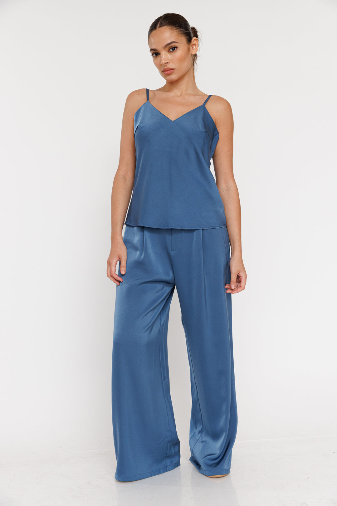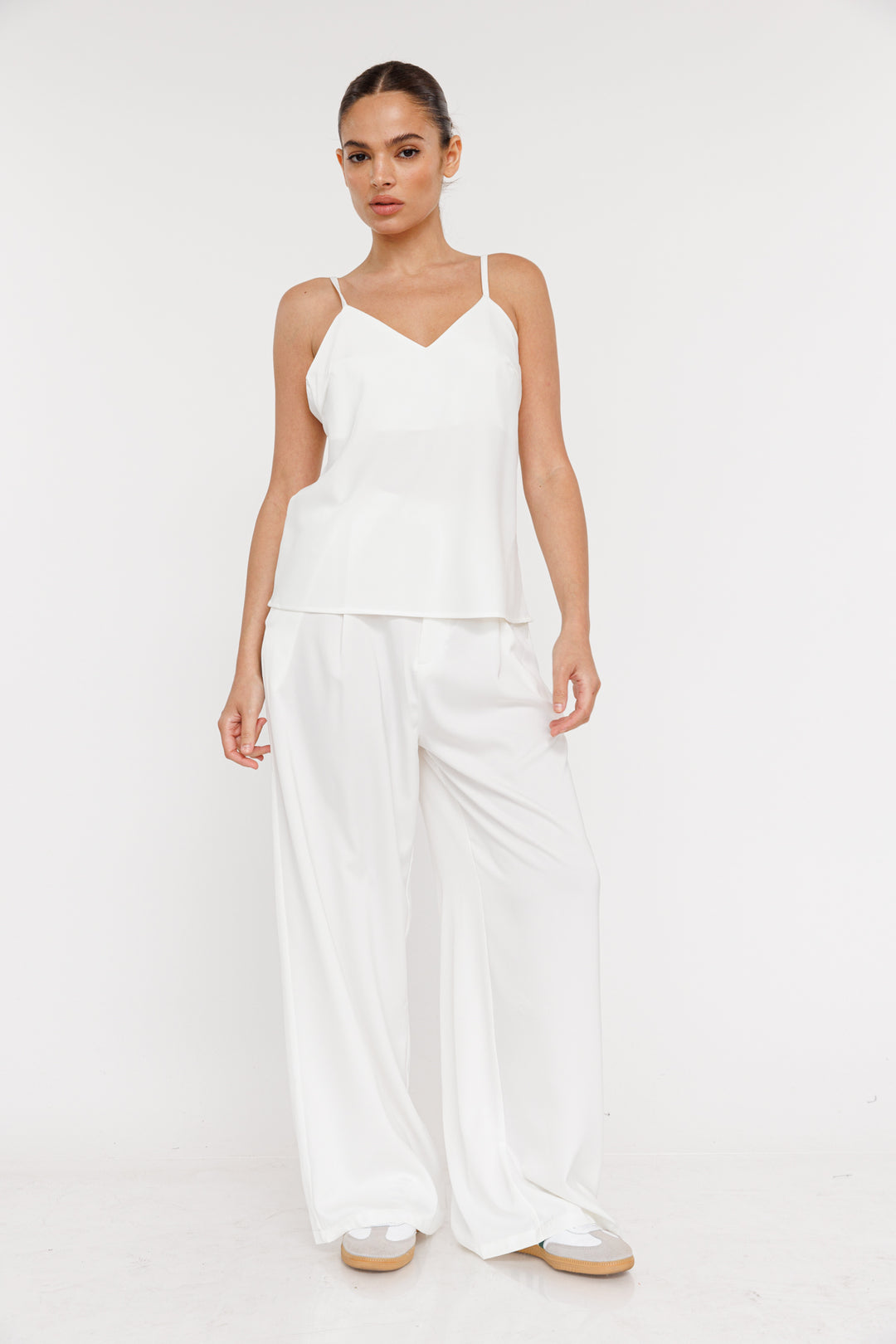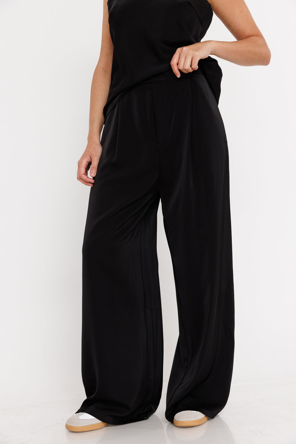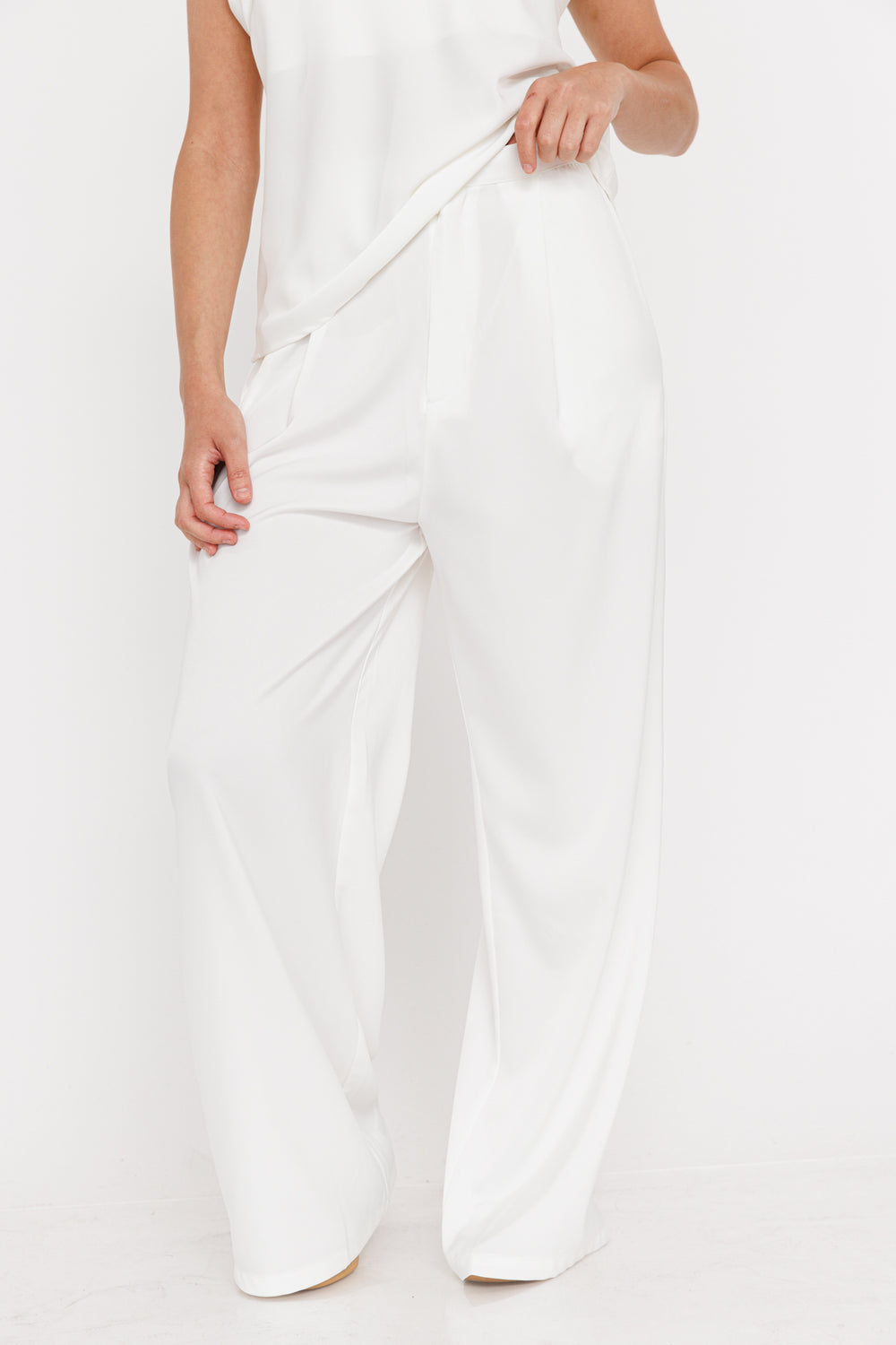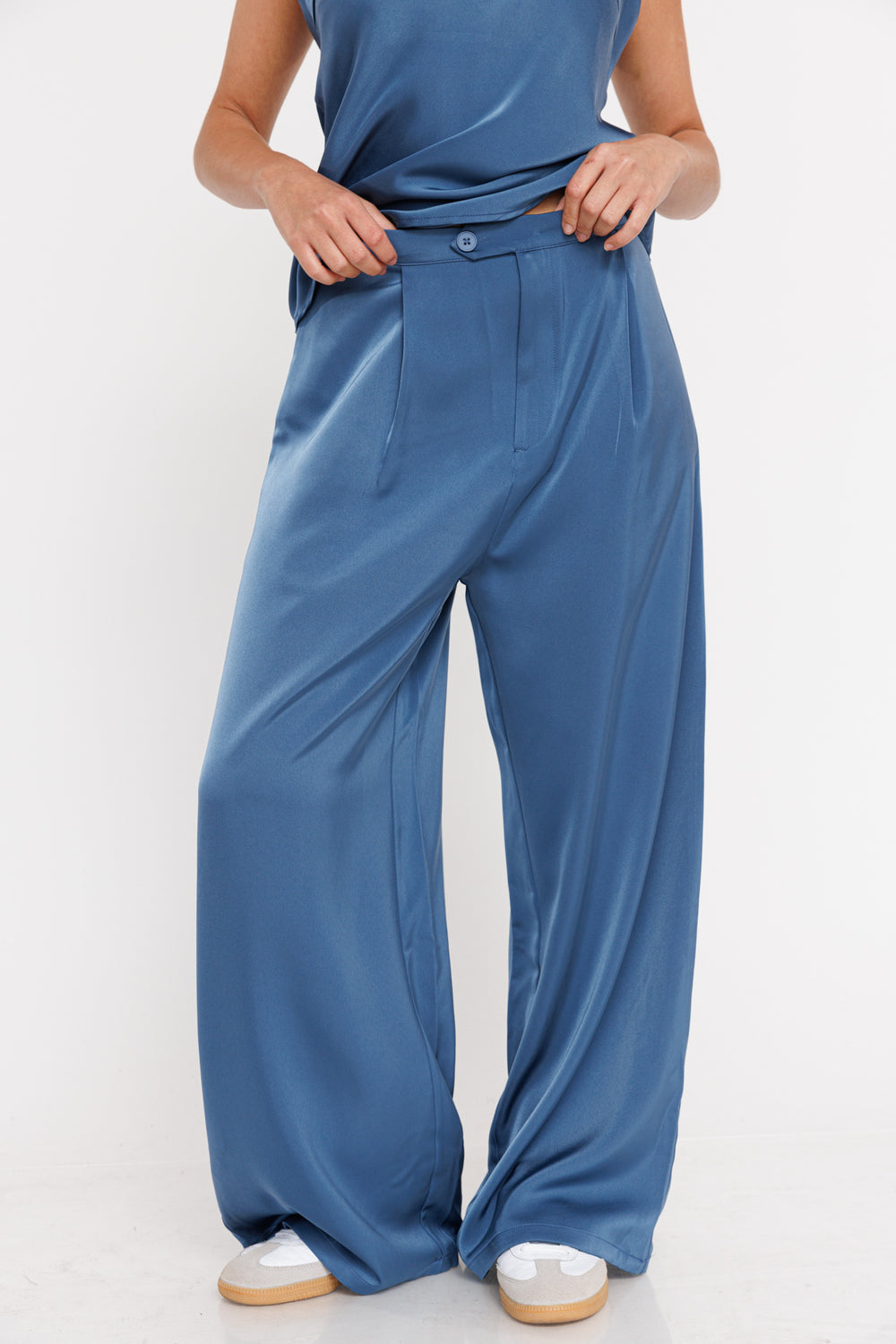 מכנסי פיל משוחררים בגזרה סופר רחבה מבד סטן. לדגם גאיה סגירת כפתור אוף סייד בשילוב רכיסה נסתרת במרכז. מתפרים במרכז הירך משלימים פיט מושלם וגומי אלסטי בחגורת הגב מעניקים להם נוחות מירבית. השלימי את הלוק עם גופיה תואמת עם טופ מינמליסטי.