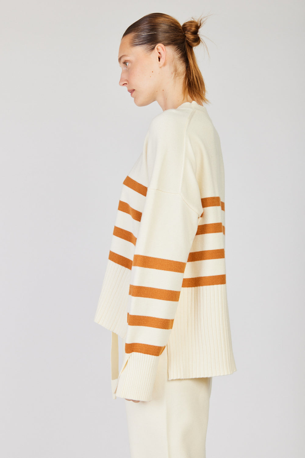 סוודר אוברסייז פסים Roy בצבע חמרה