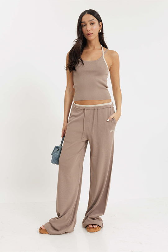 מכנסיים ארוכים עם גימורים בצבע חום
