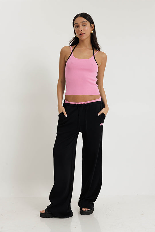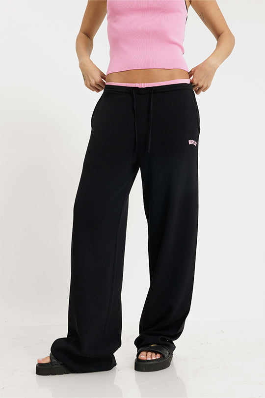 מכנסיים ארוכים עם גימורים ורודים בצבע שחור
