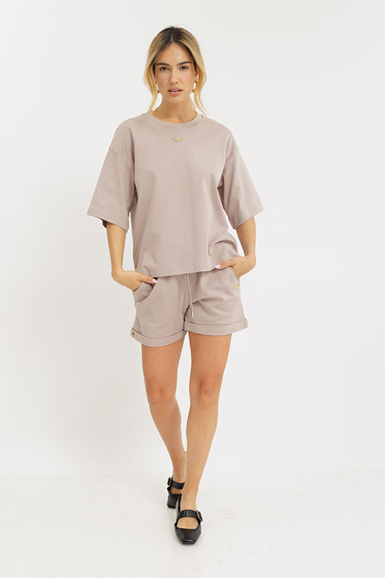 מכנסיים קצרים עם גימורים בצבע חום