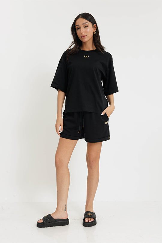 מכנסיים קצרים עם גימורים בצבע שחור