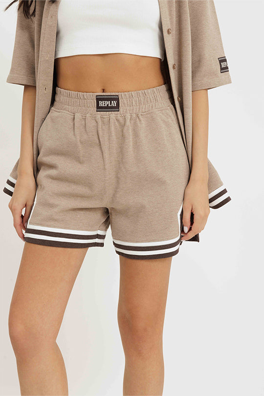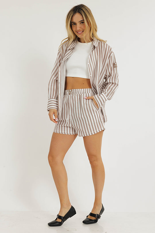 שורטס פסים בצבע חום/לבן