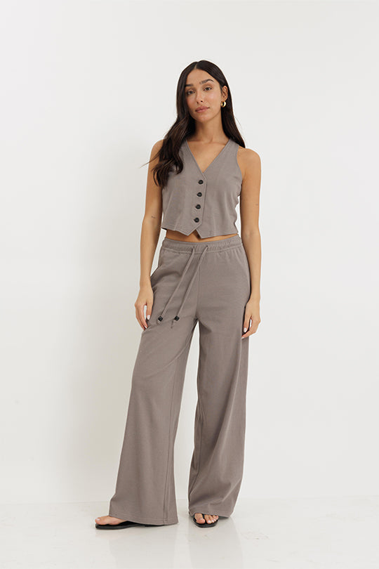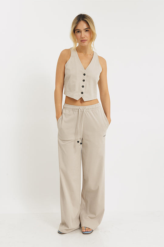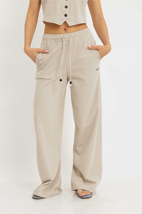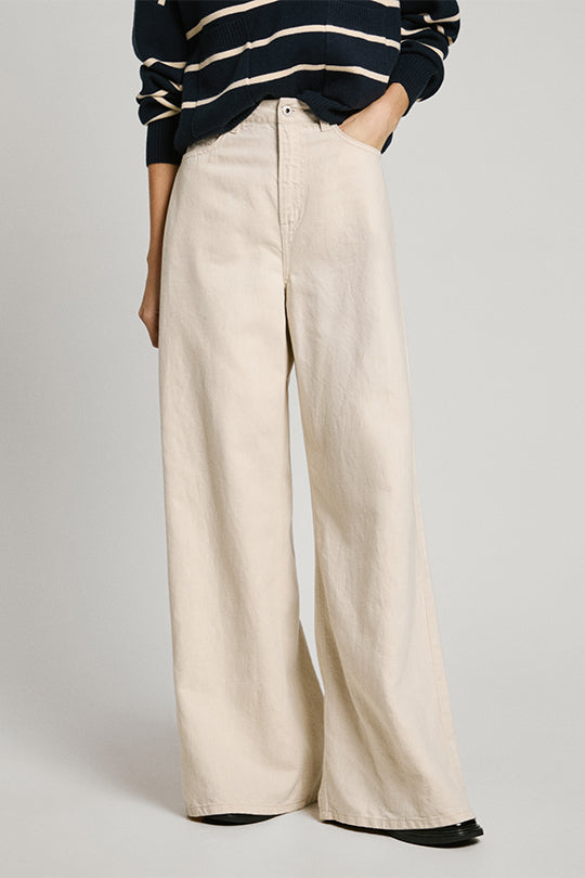 מכנסי St. Barts רחבים עם שסע בצבע קרם