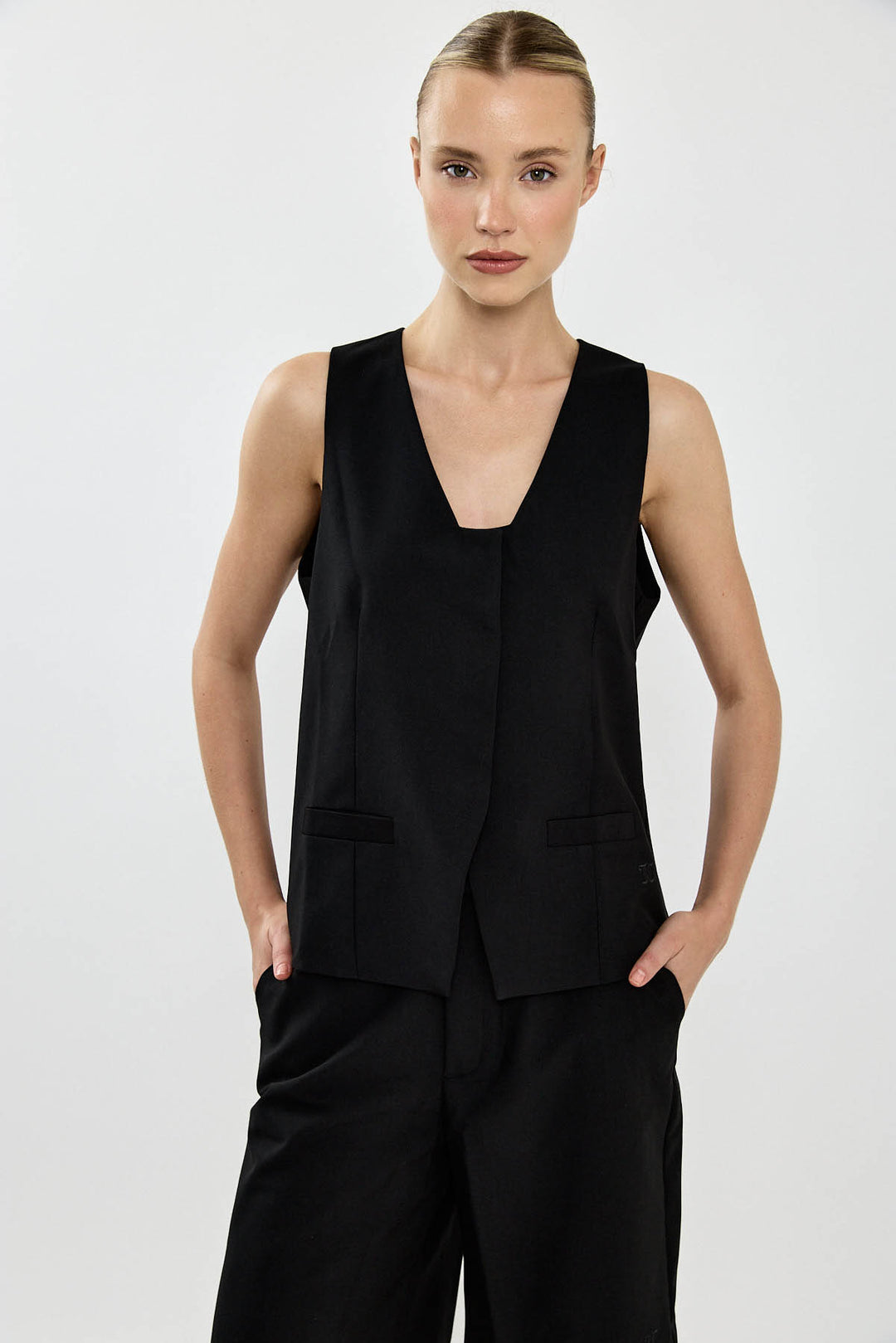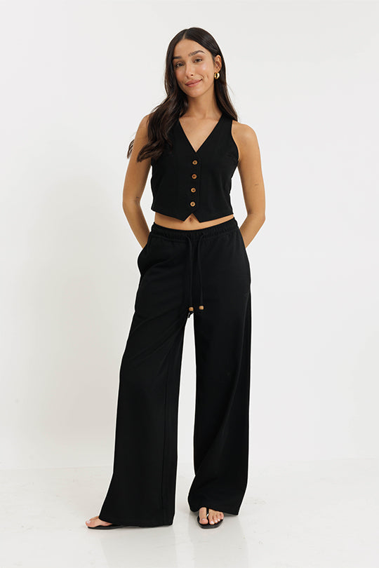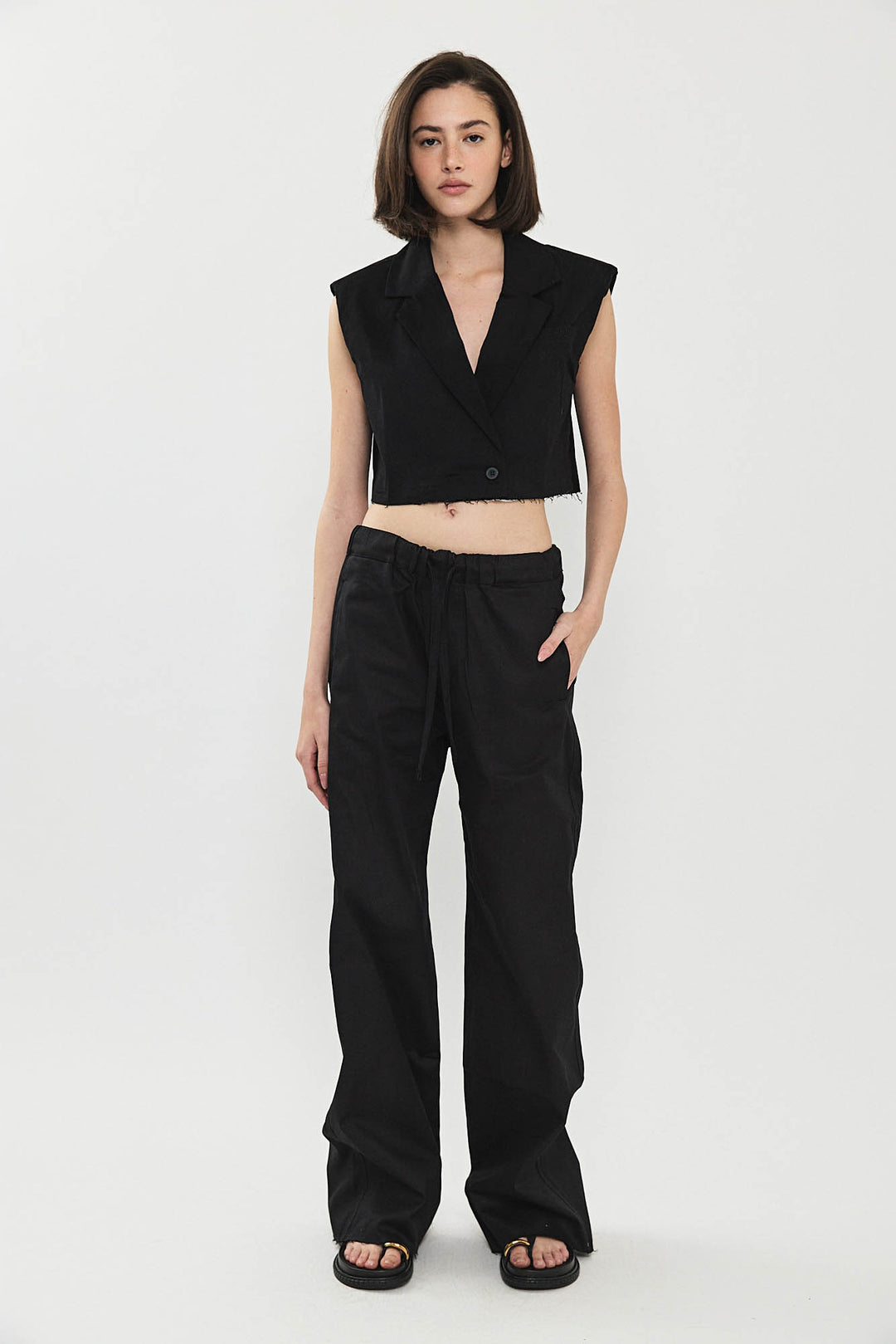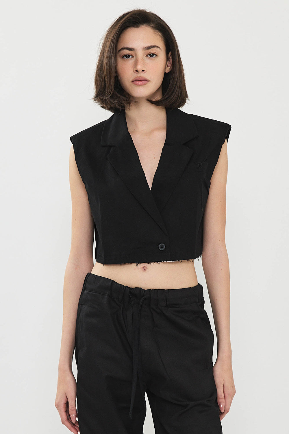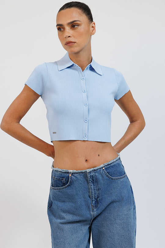 חולצה קצרה מכופתרת Knit Crop בצבע שחור