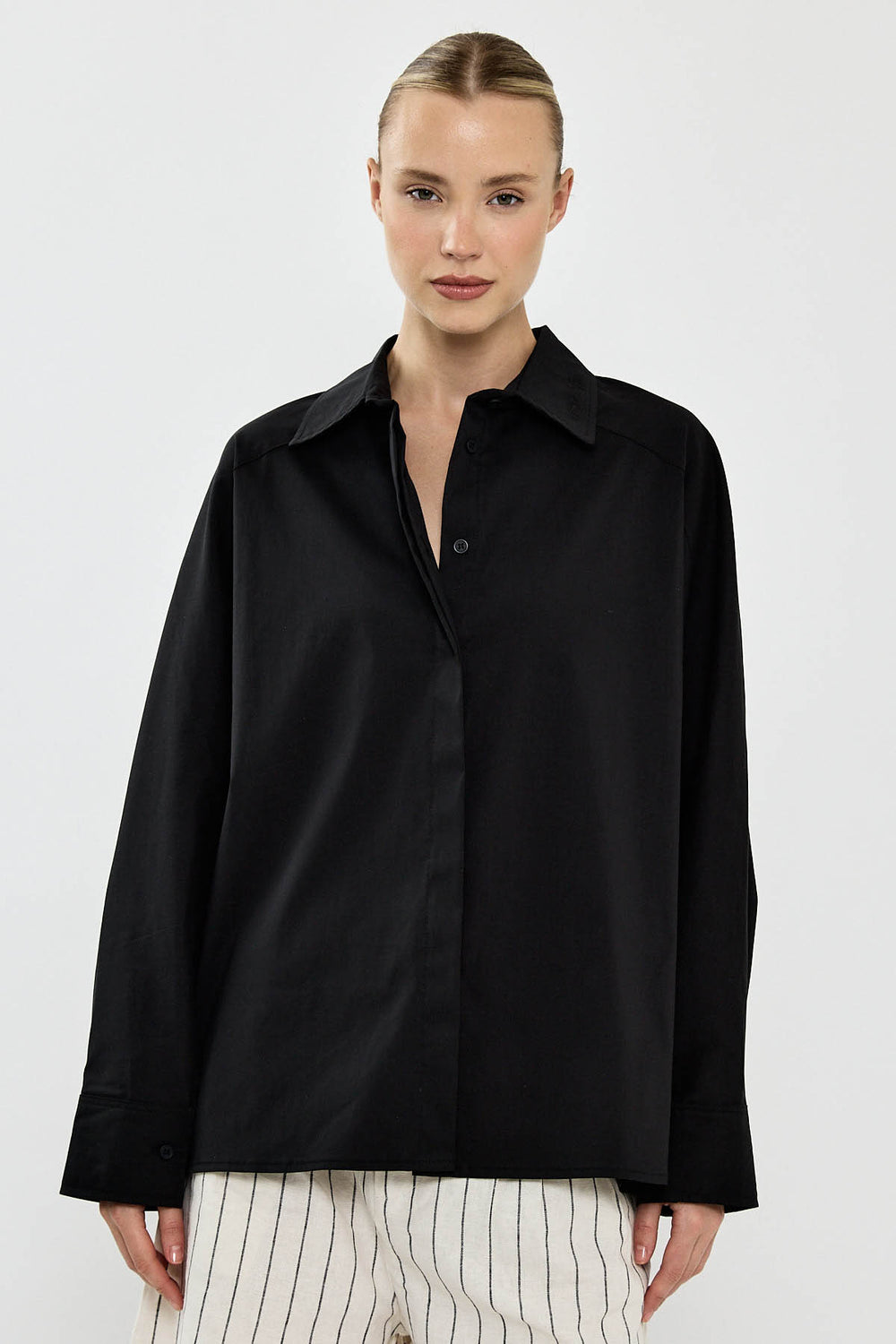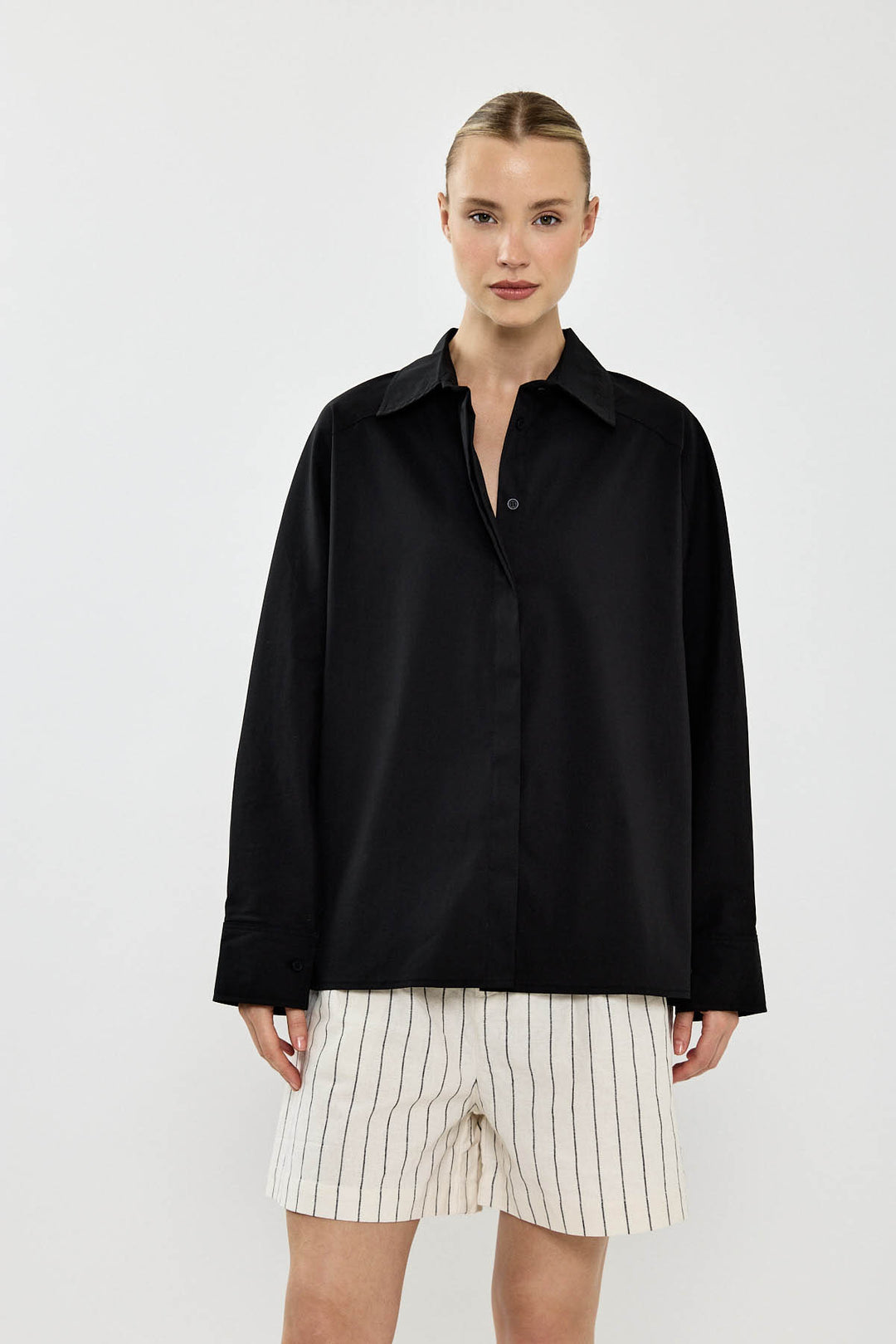 חולצה מכופתרת Napa בגזרה רחבה בצבע שחור