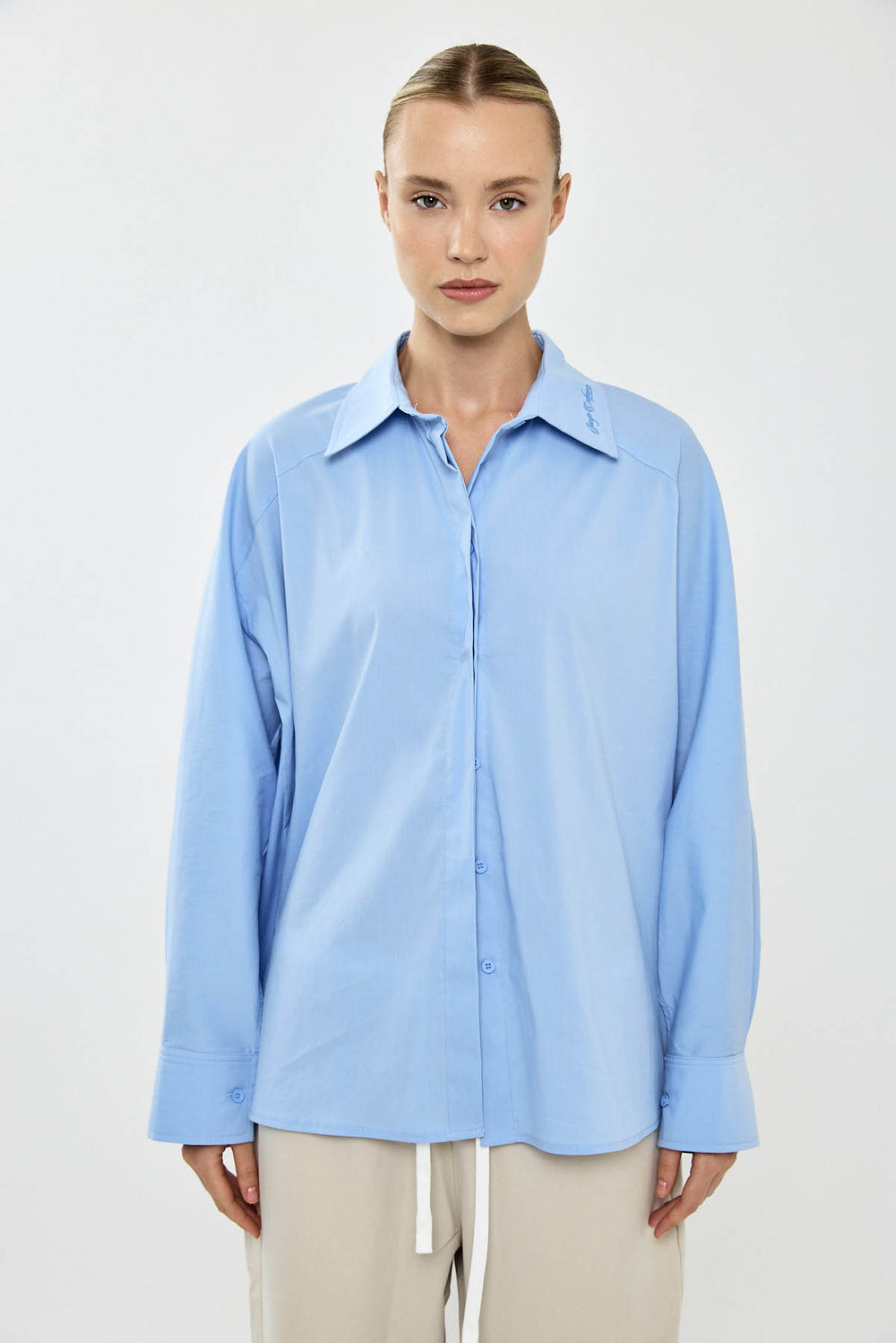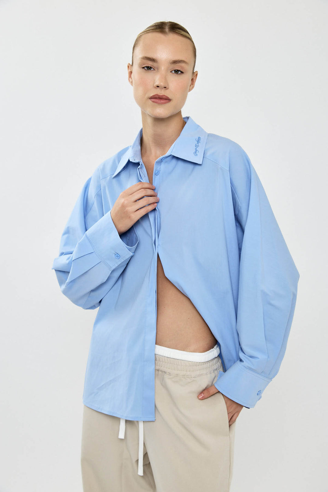 חולצה מכופתרת Queen of Hearts בצבע תכלת עם פסים