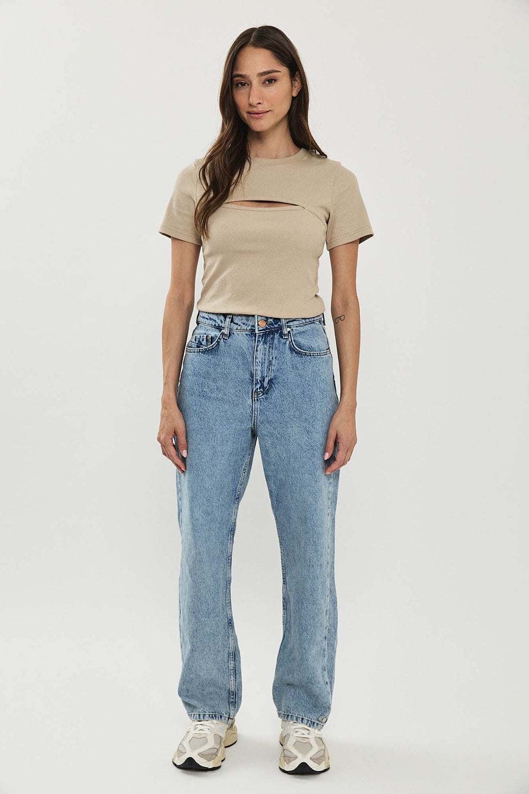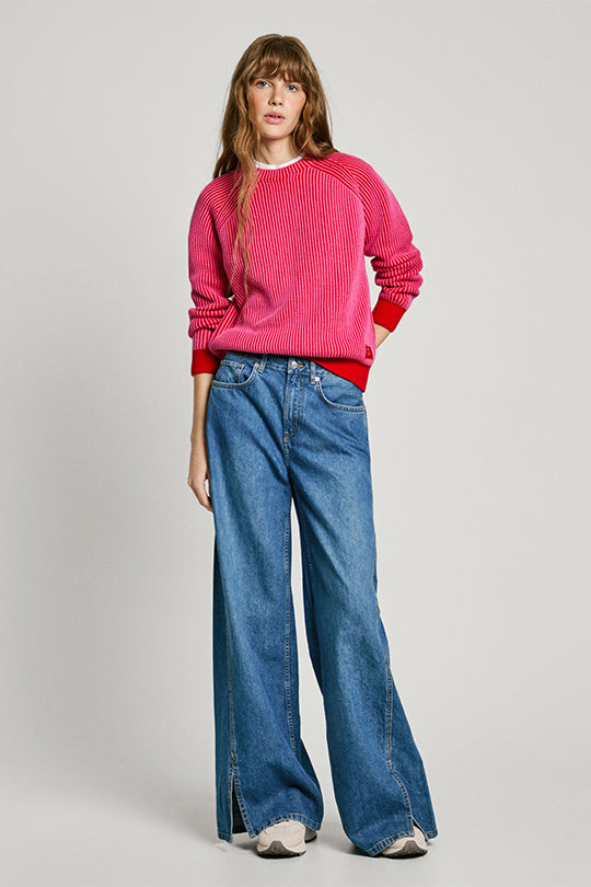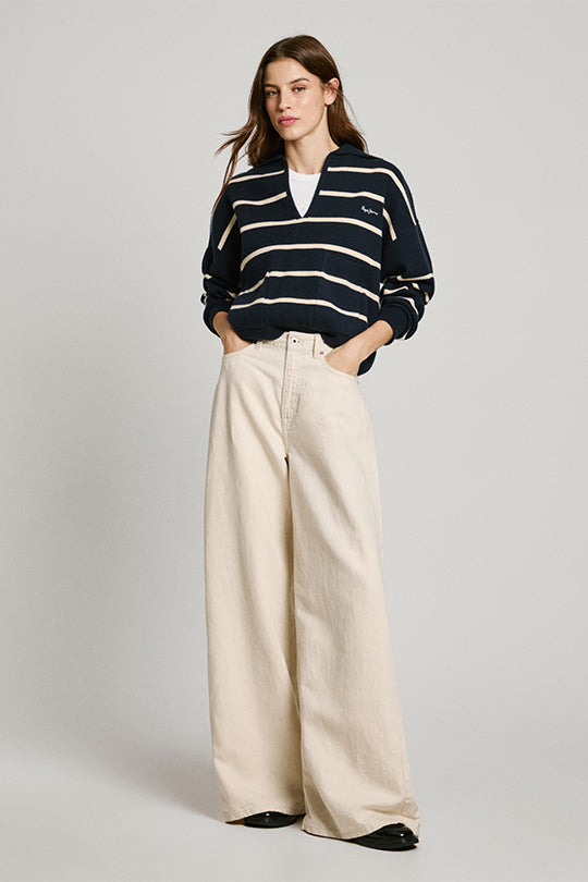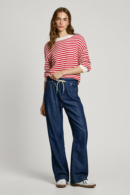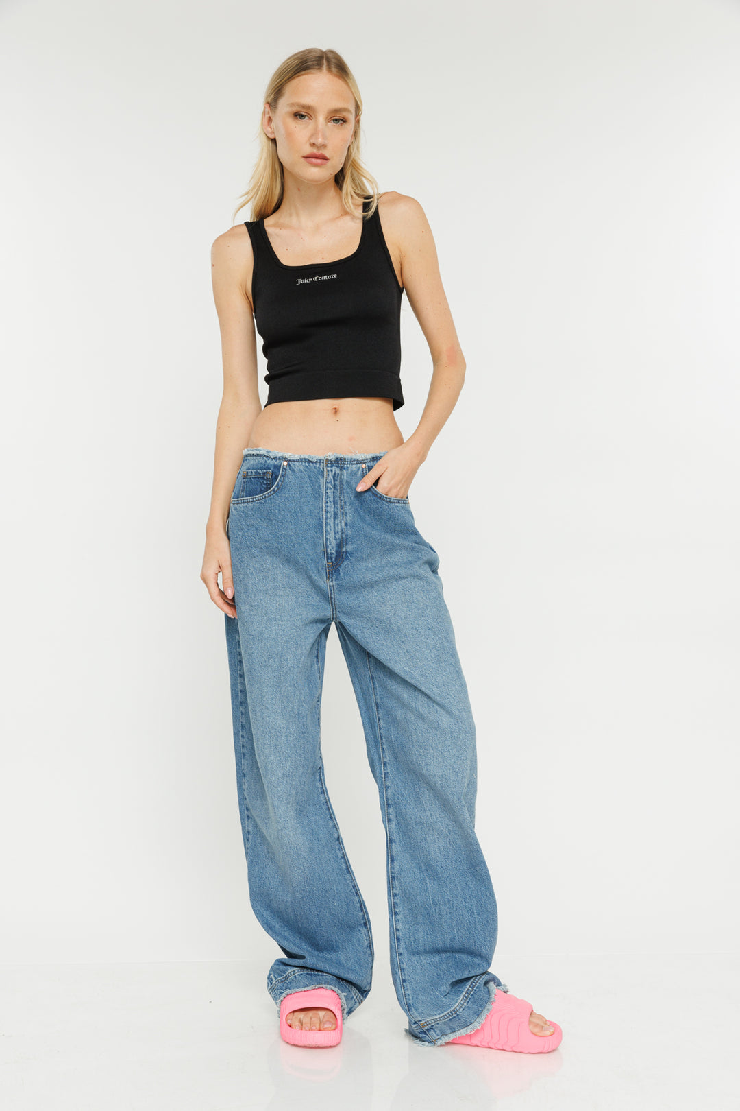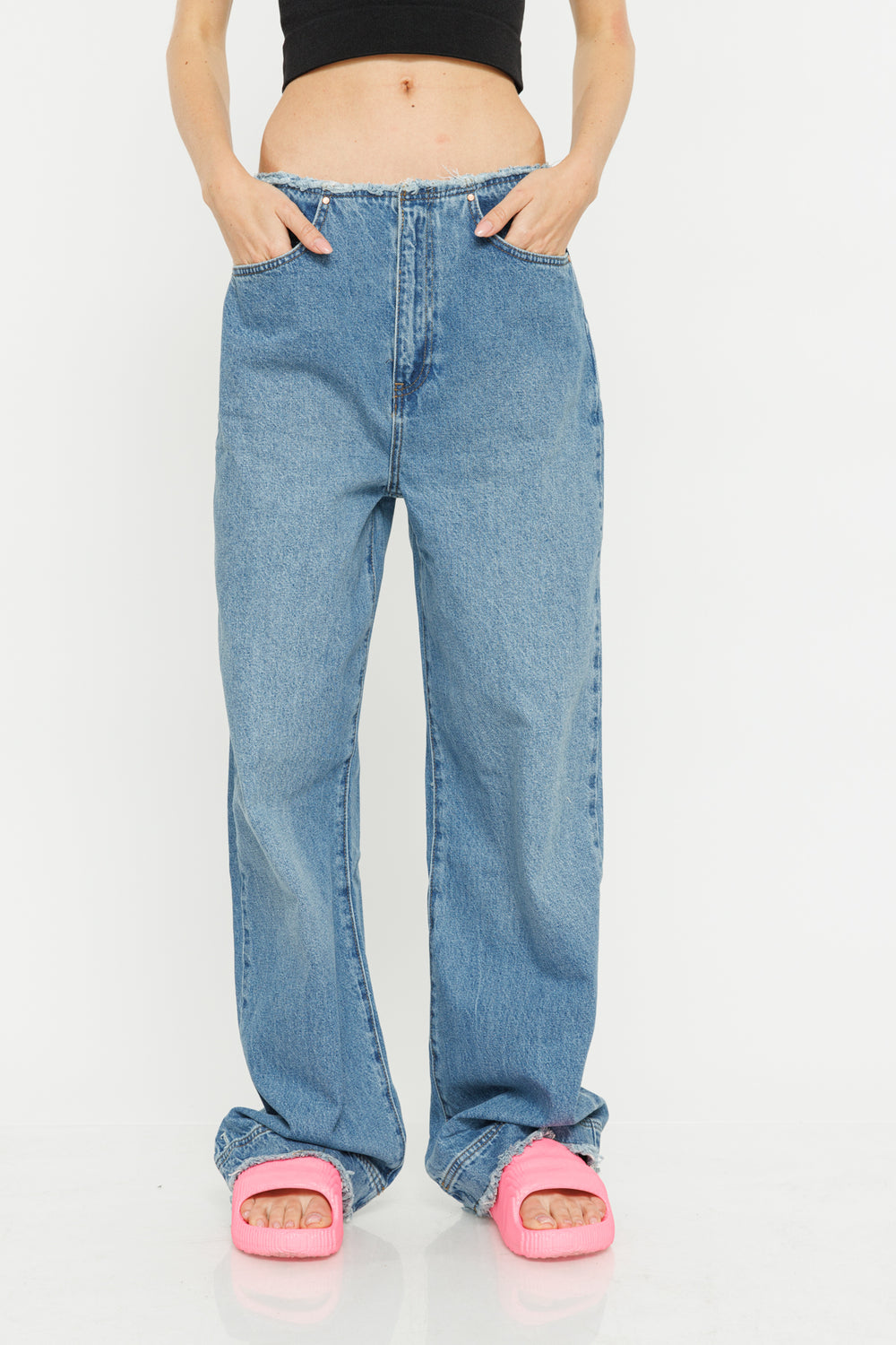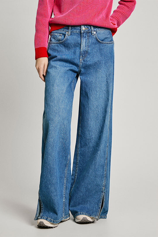 ג'ינס Mid Wide Leg בצבע כחול כהה