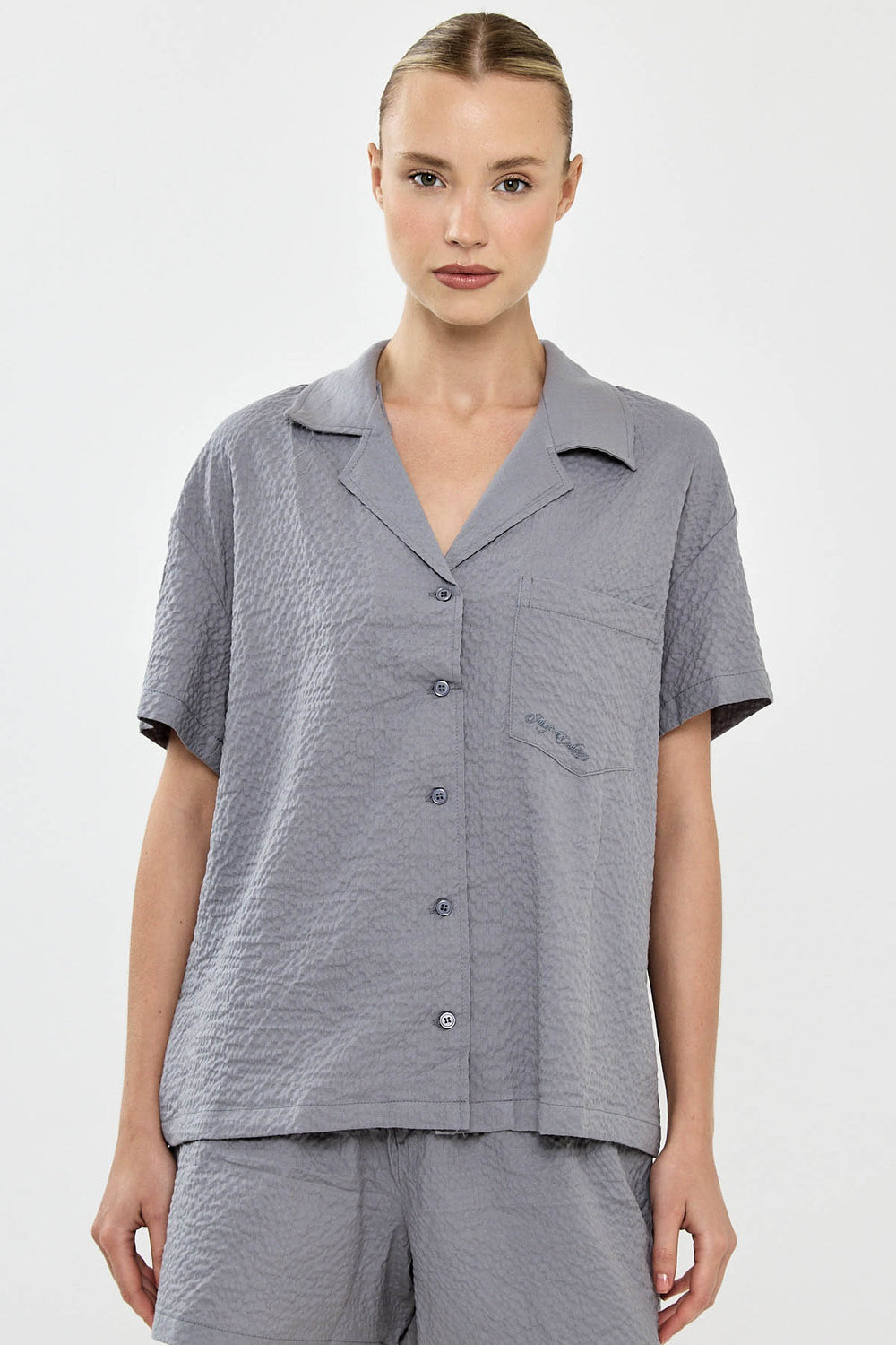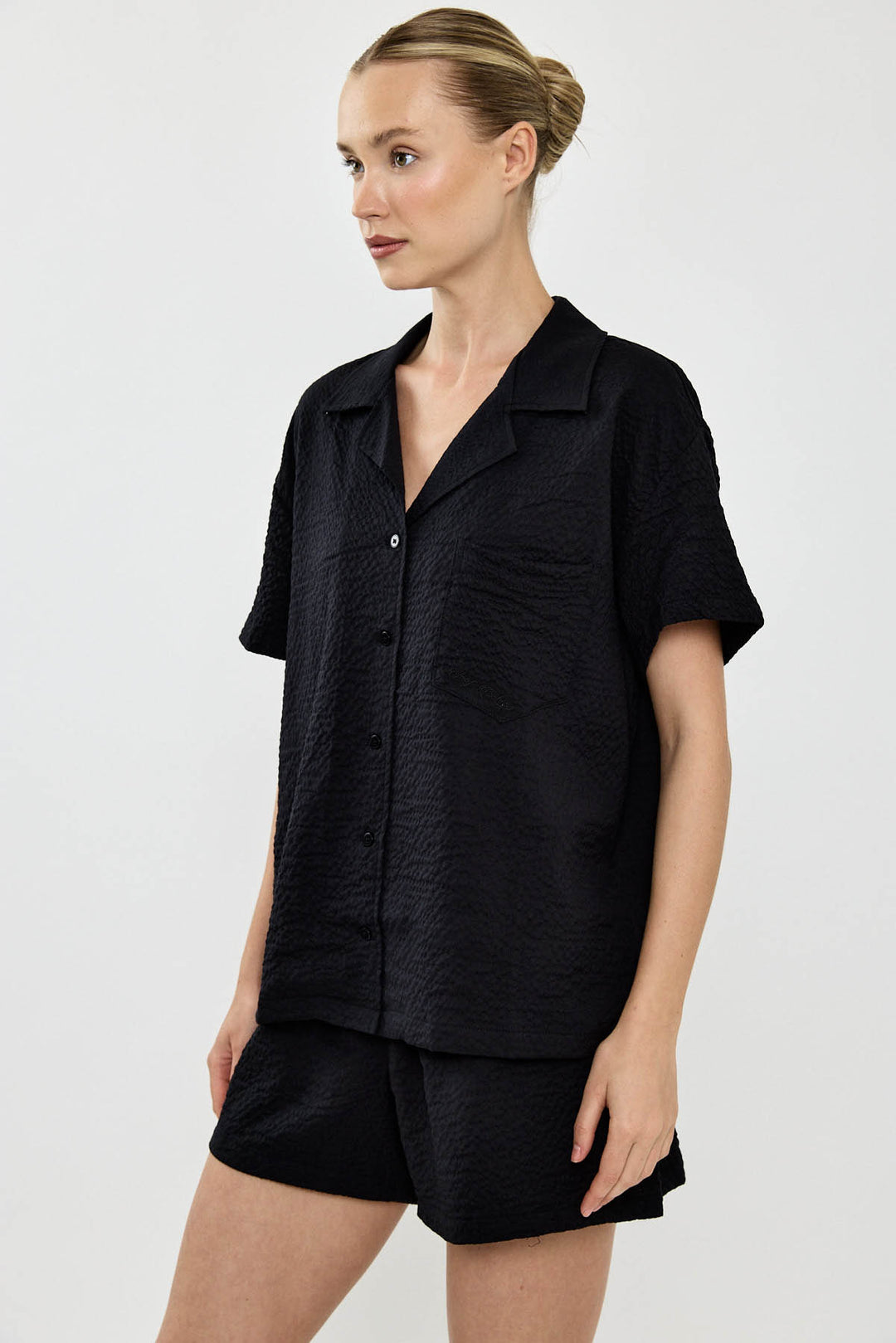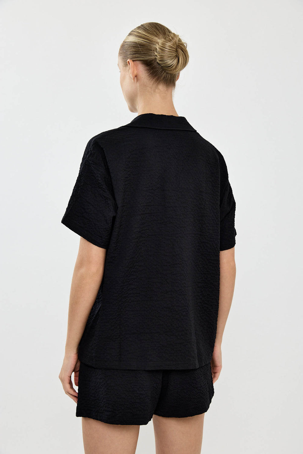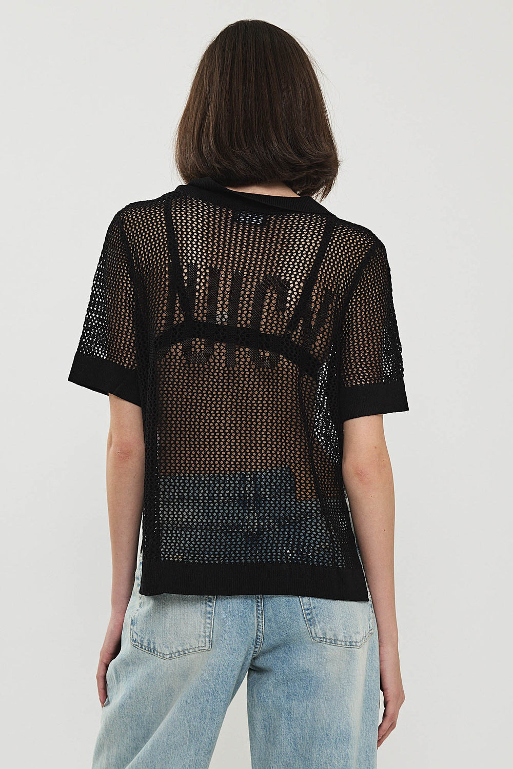 חולצה קצרה מכופתרת Mesh בצבע שחור