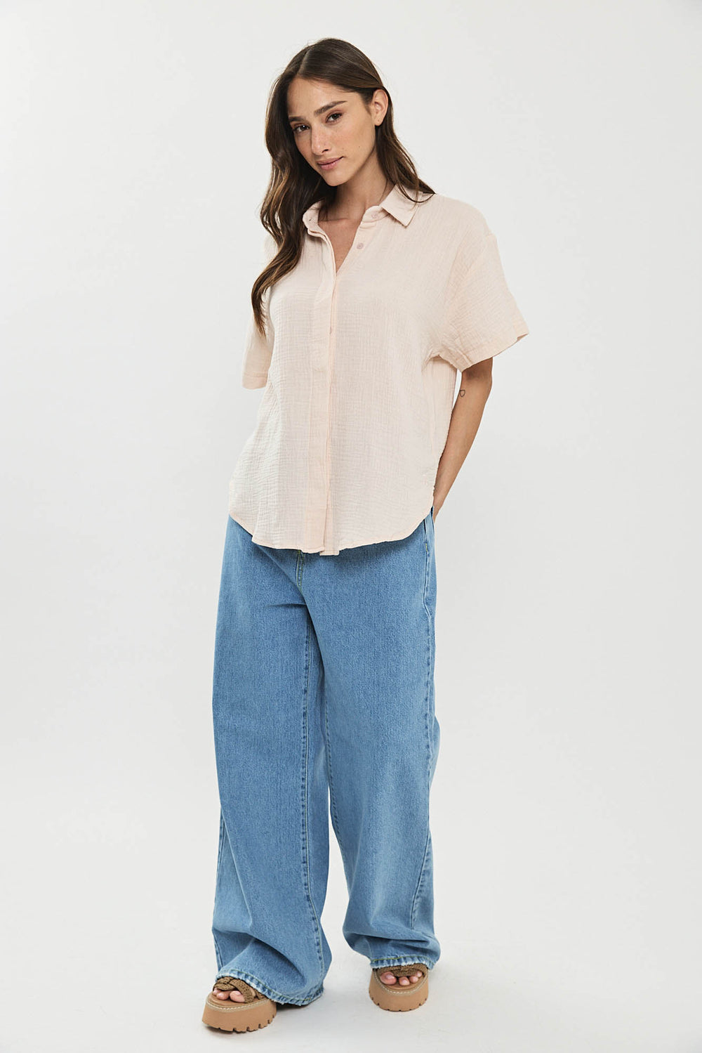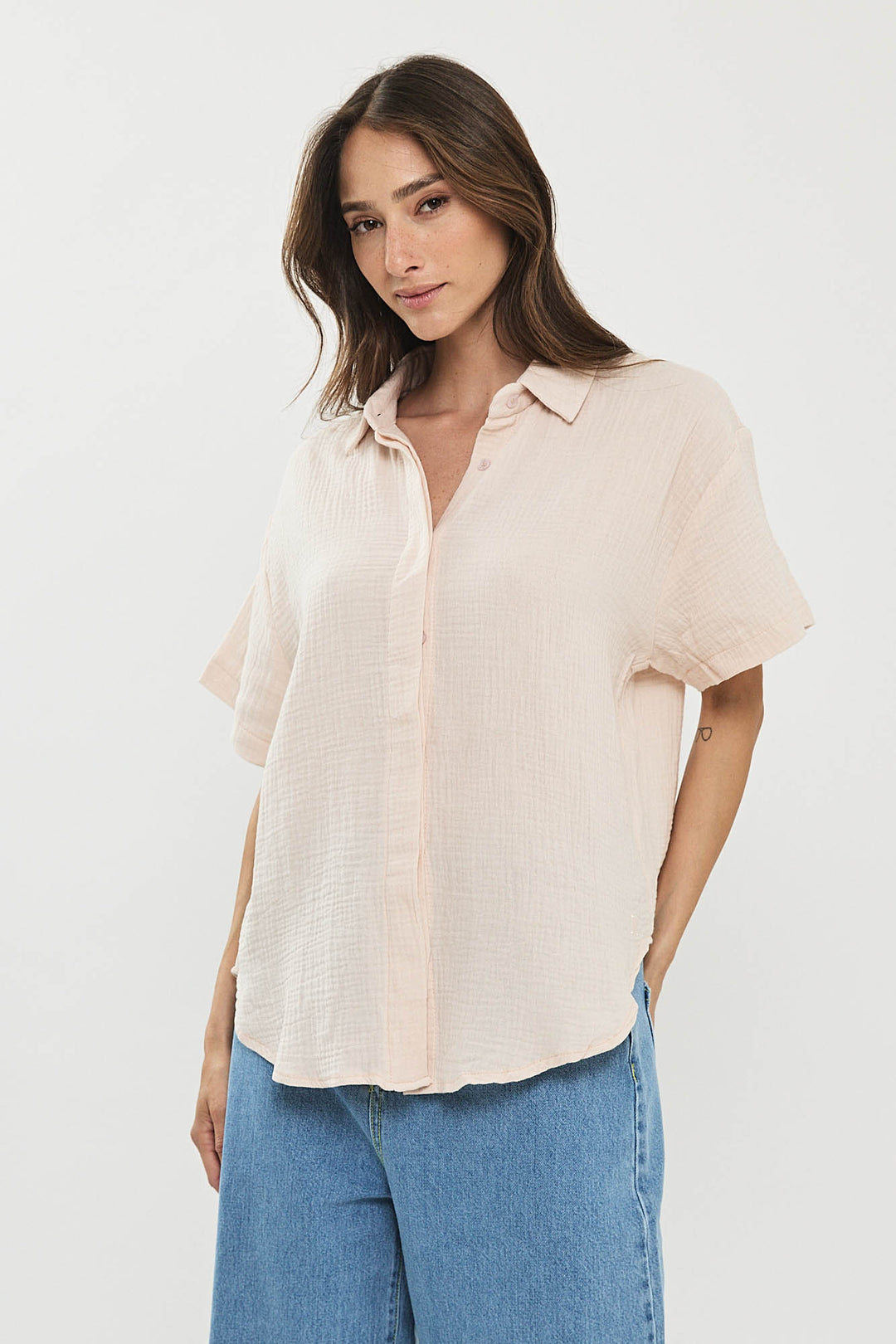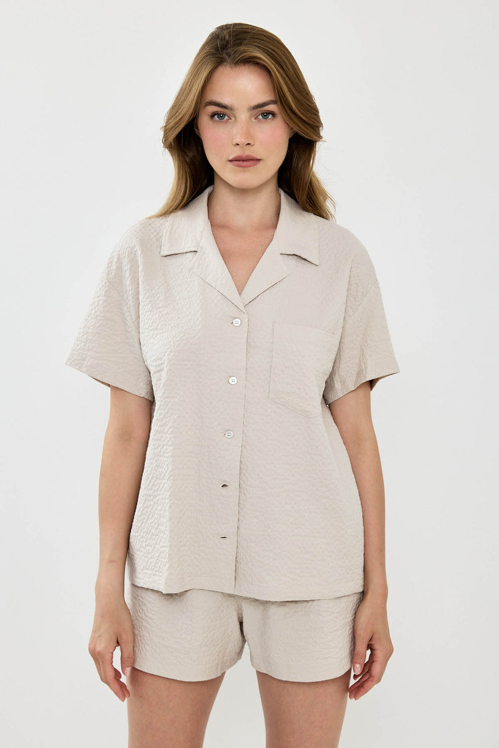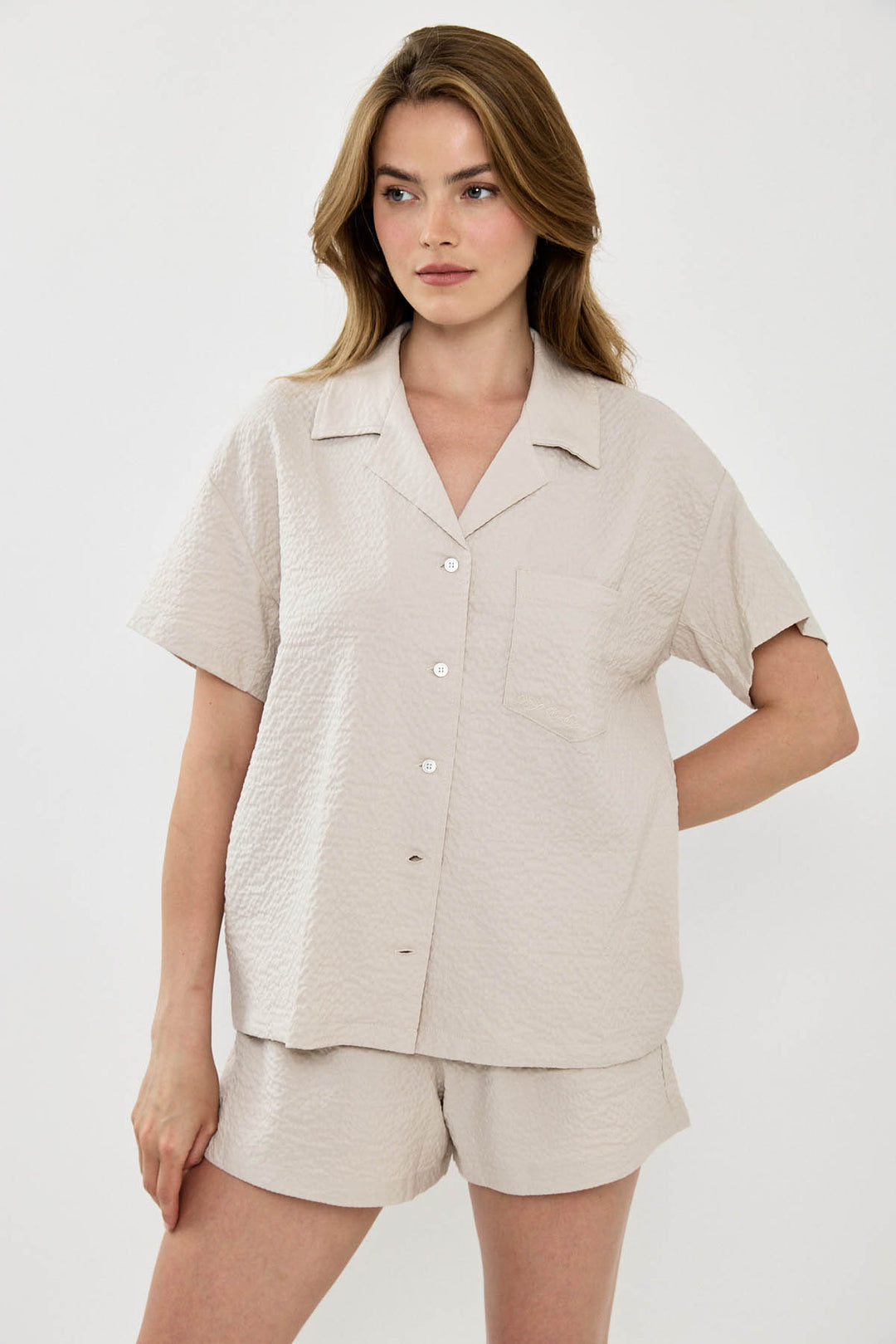 חולצה קצרה מכופתרת טטרה Ruby בז'