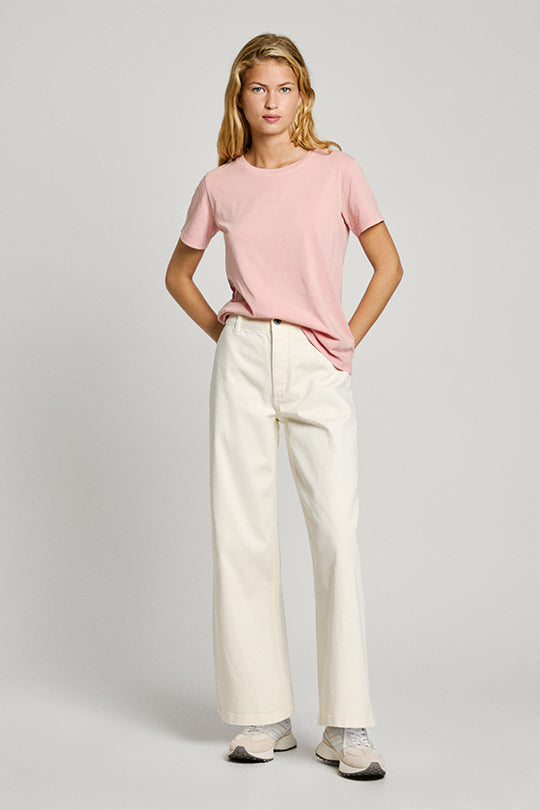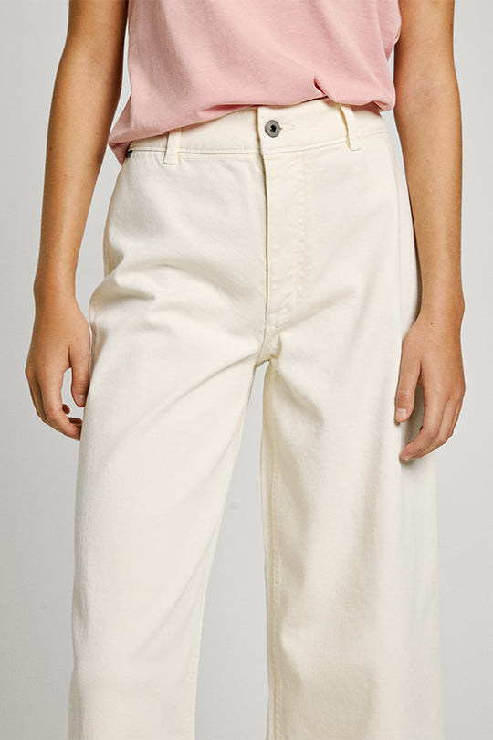 מכנסיים רחבים בגזרה גבוהה TANIA בצבע שמנת