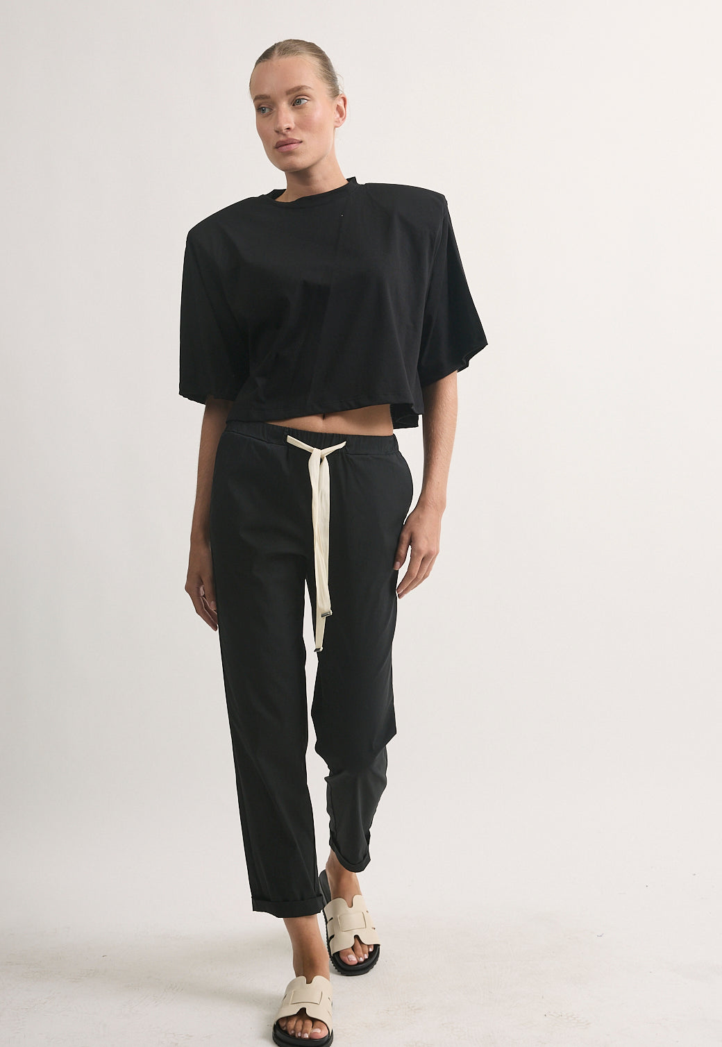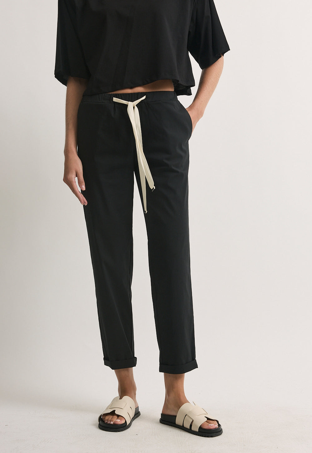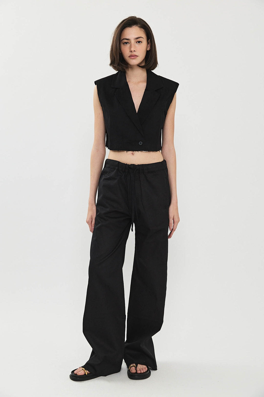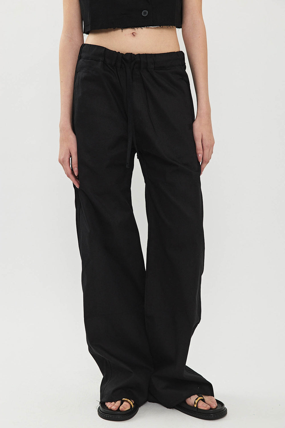 מכנסיים בגזרה רחבה עם שרוך בצבע שחור