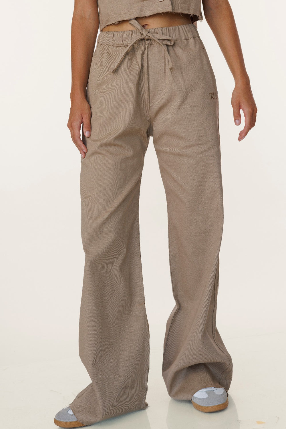 מכנסיים בגזרה רחבה עם שרוך בצבע בז'