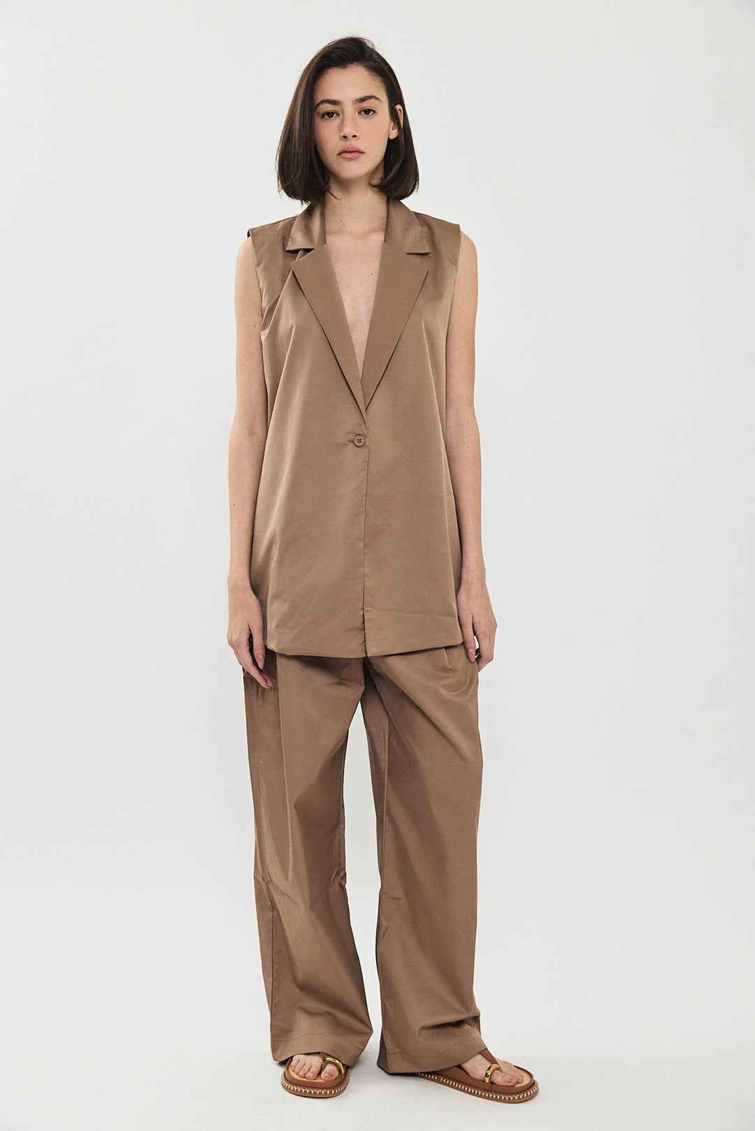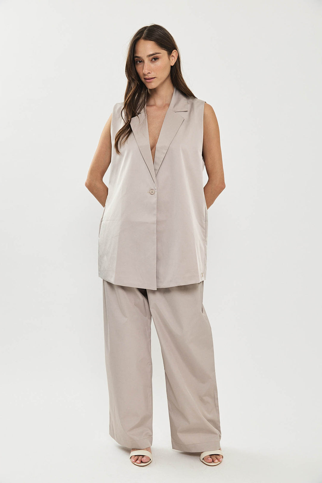מכנסיים בגזרה רחבה Rene בצבע אבן