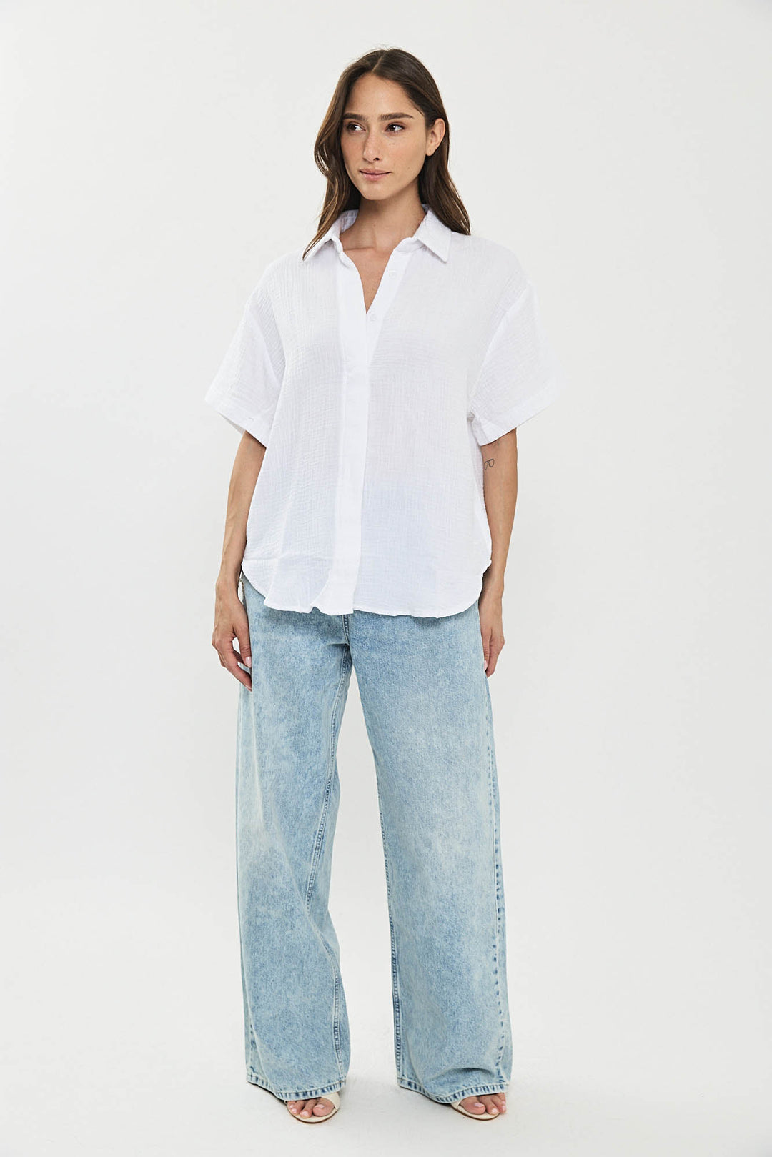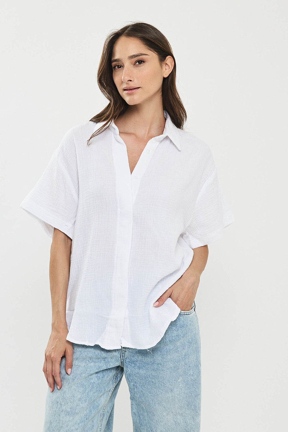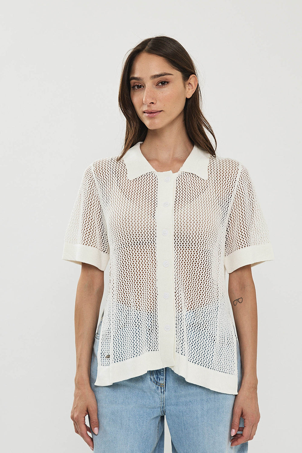 חולצה קצרה מכופתרת טטרה Ruby לבן