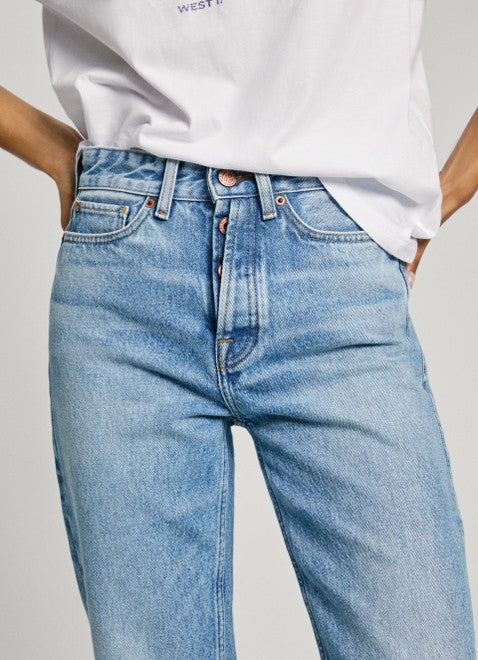 ג'ינס בגזרת סטרייט קלאסית עם מותן גבוהה בגוון דנים וינטג' בהיר. עשוי מבד דנים איכותי, נוח ומחמיא, מתאים לכל לוק יומיומי או מתוחכם. פריט חובה במלתחה שמשתלב מושלם עם טי-שירט, סוודר או חולצה אלגנטית.