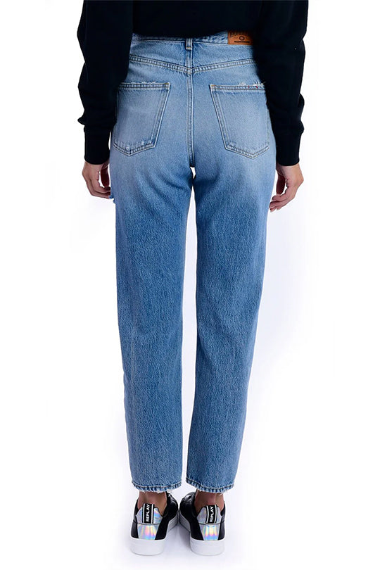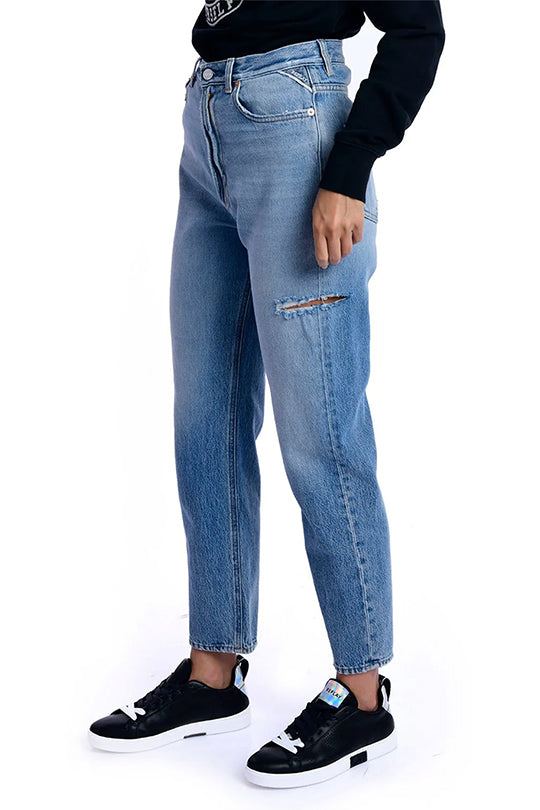 ג'ינס בויפרנד עם קרעים בצבע כחול