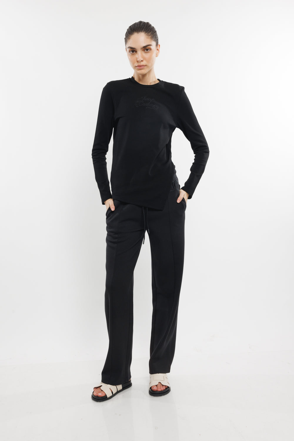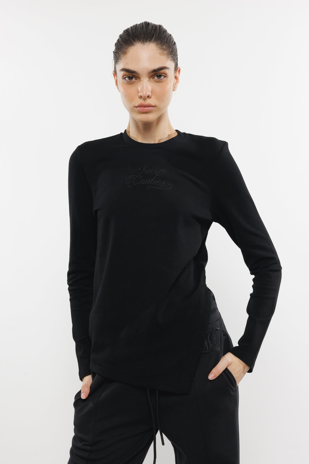 חולצת אוברסייז שרוול ארוך V בצבע שחור