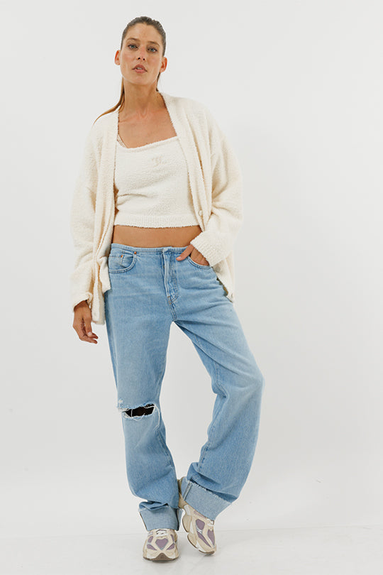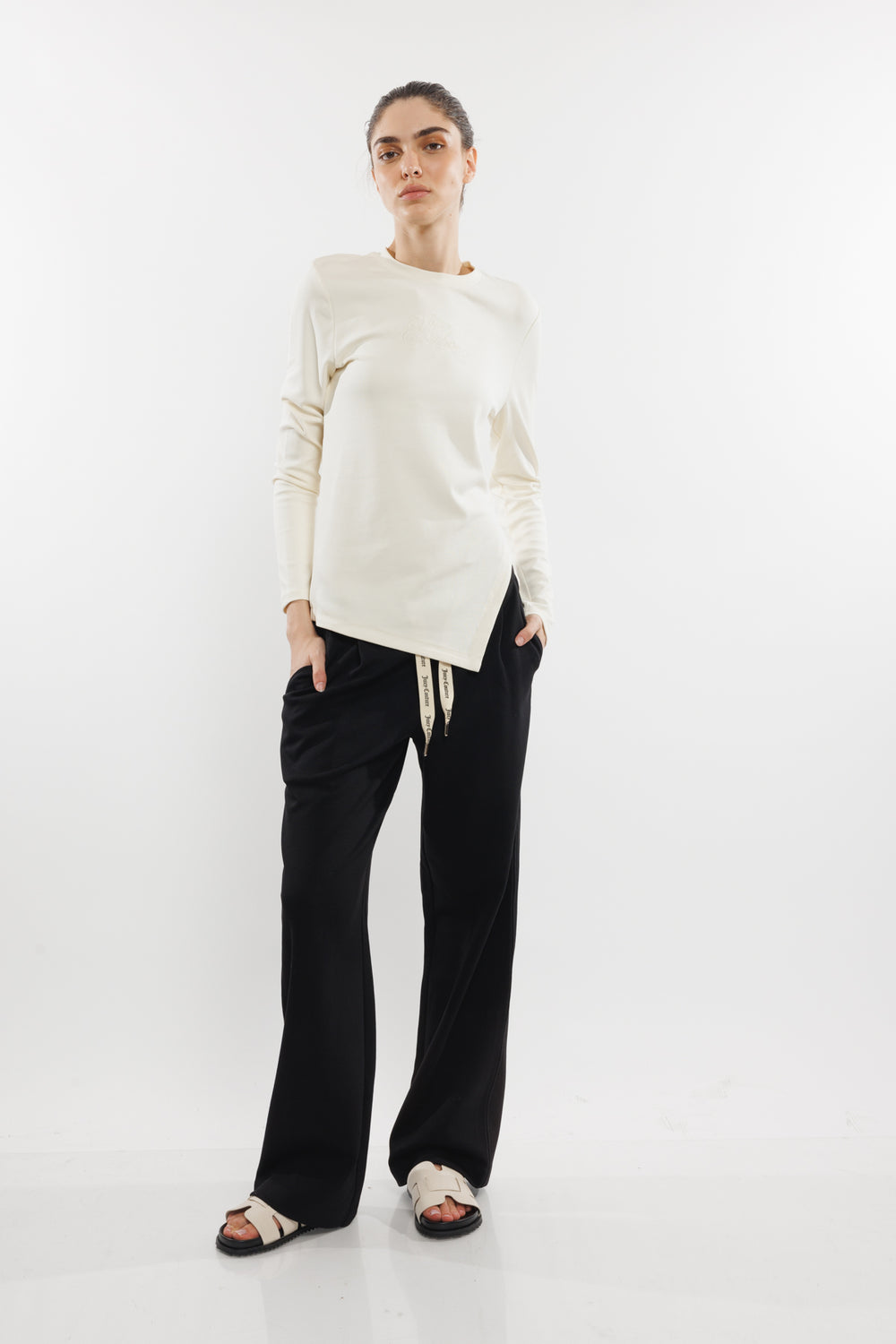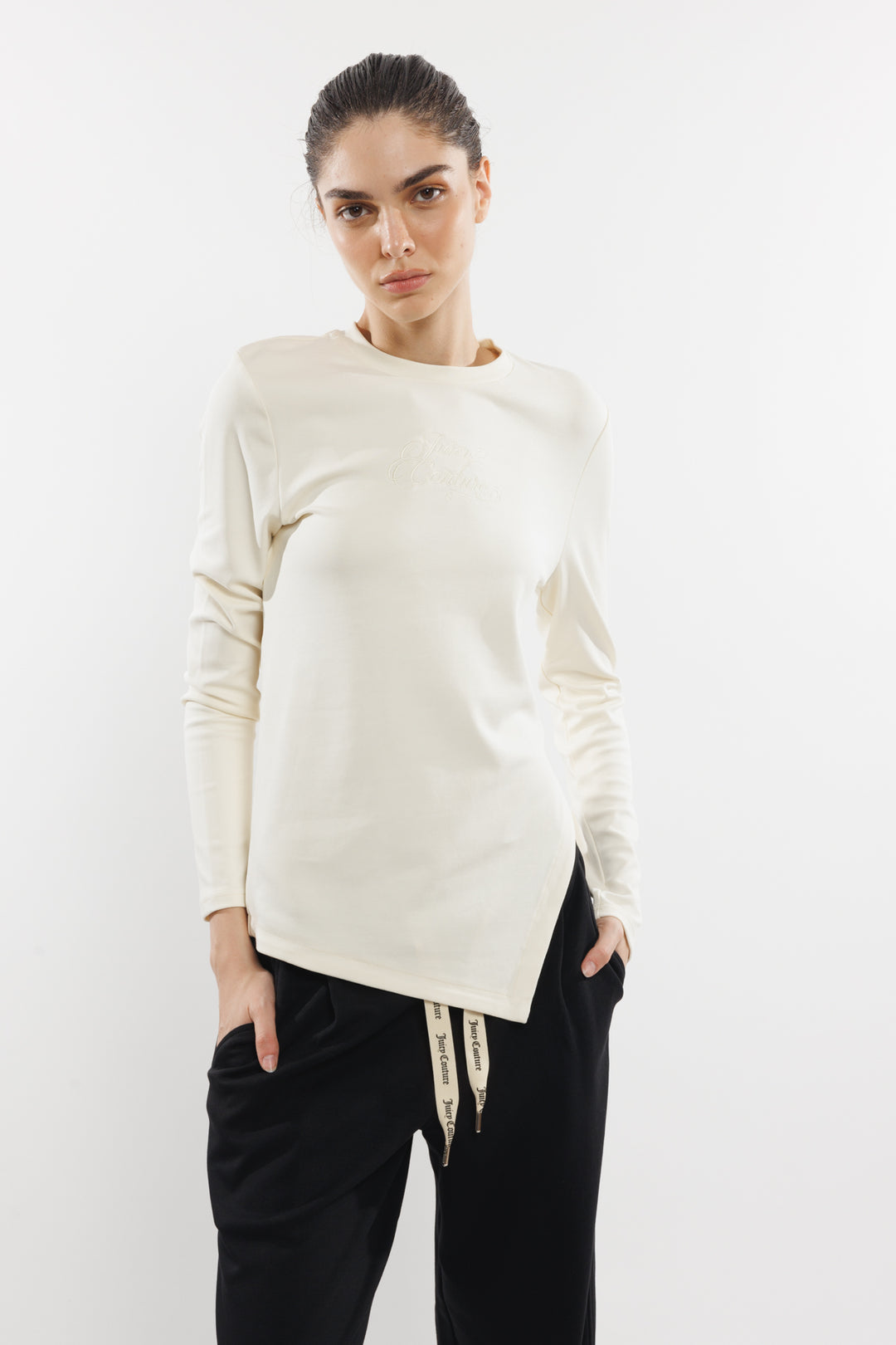 חולצת אוברסייז שרוול ארוך V בצבע שמנת