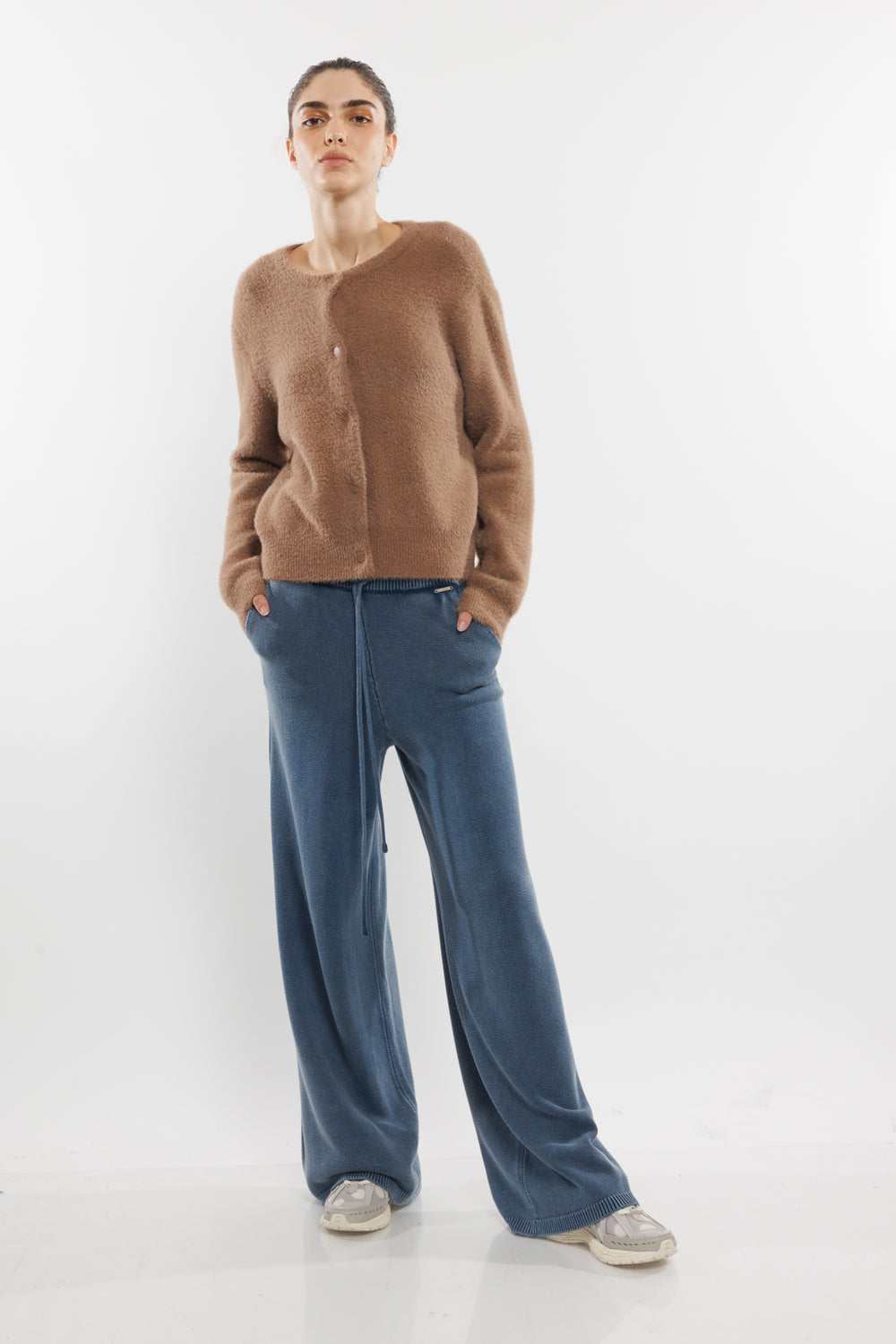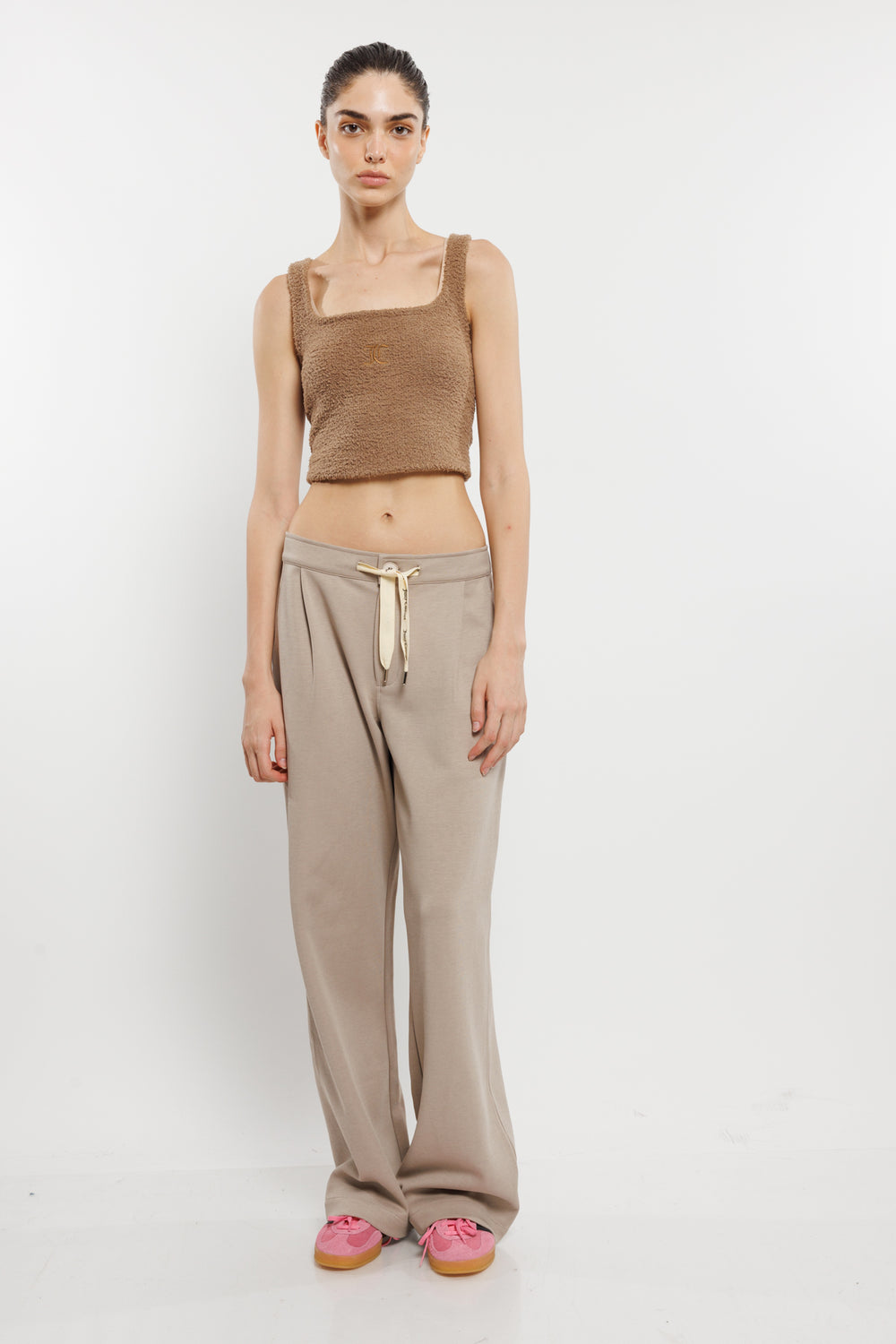 מכנסי טרנינג קטיפה W Fancy בצבע חום