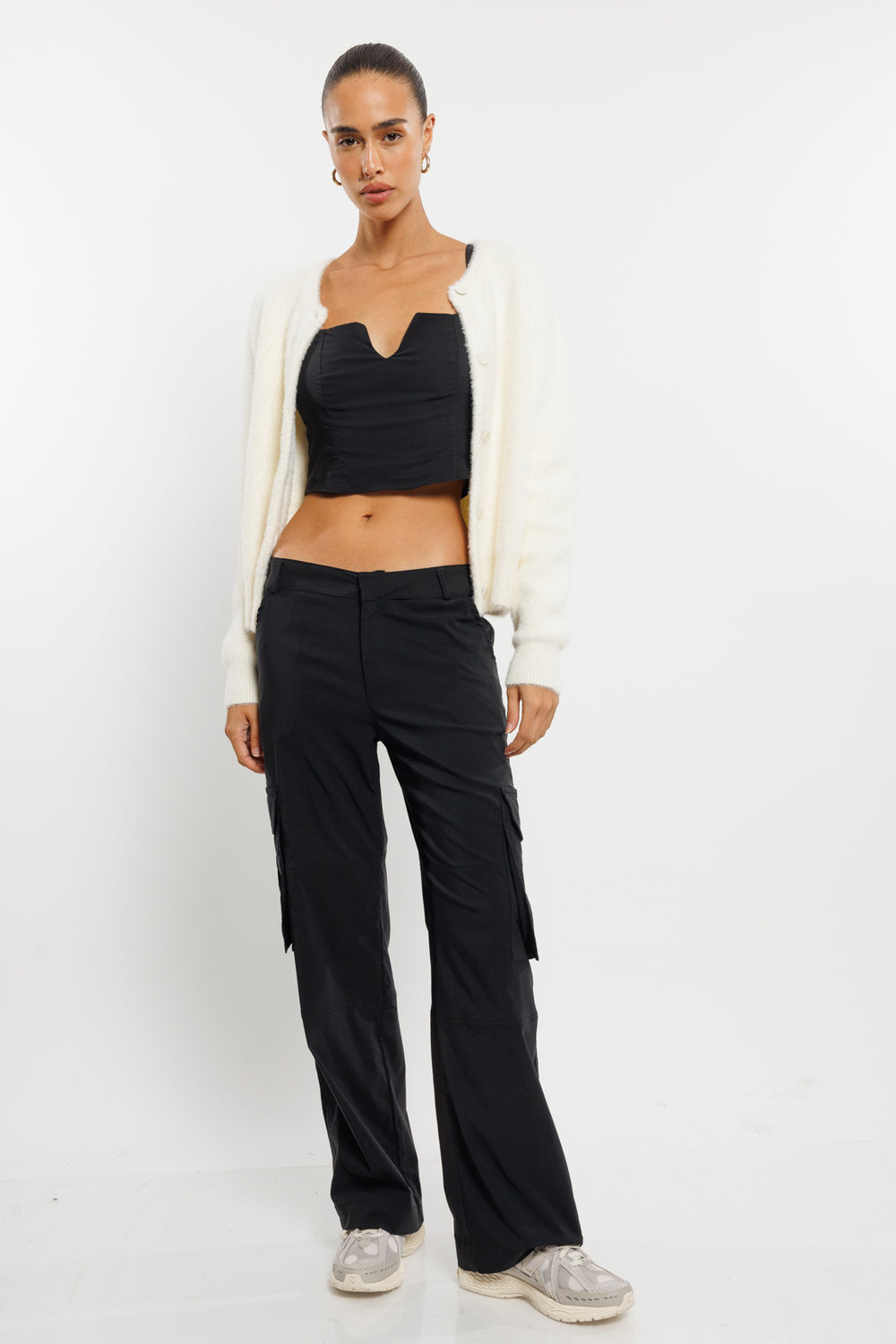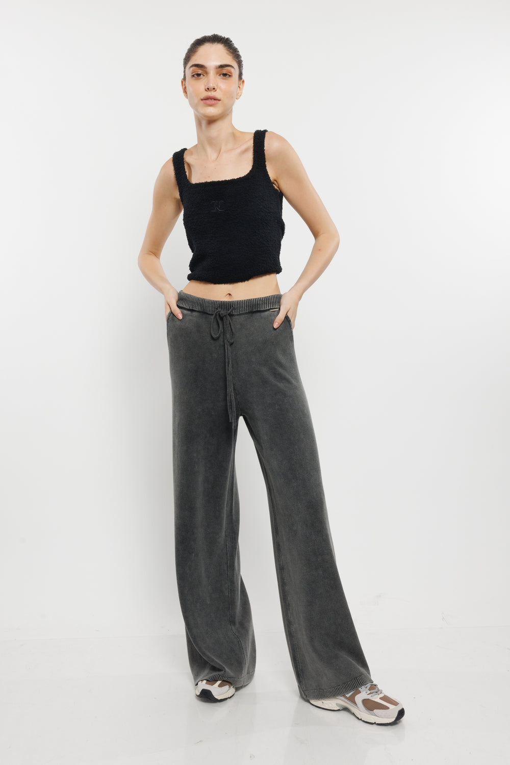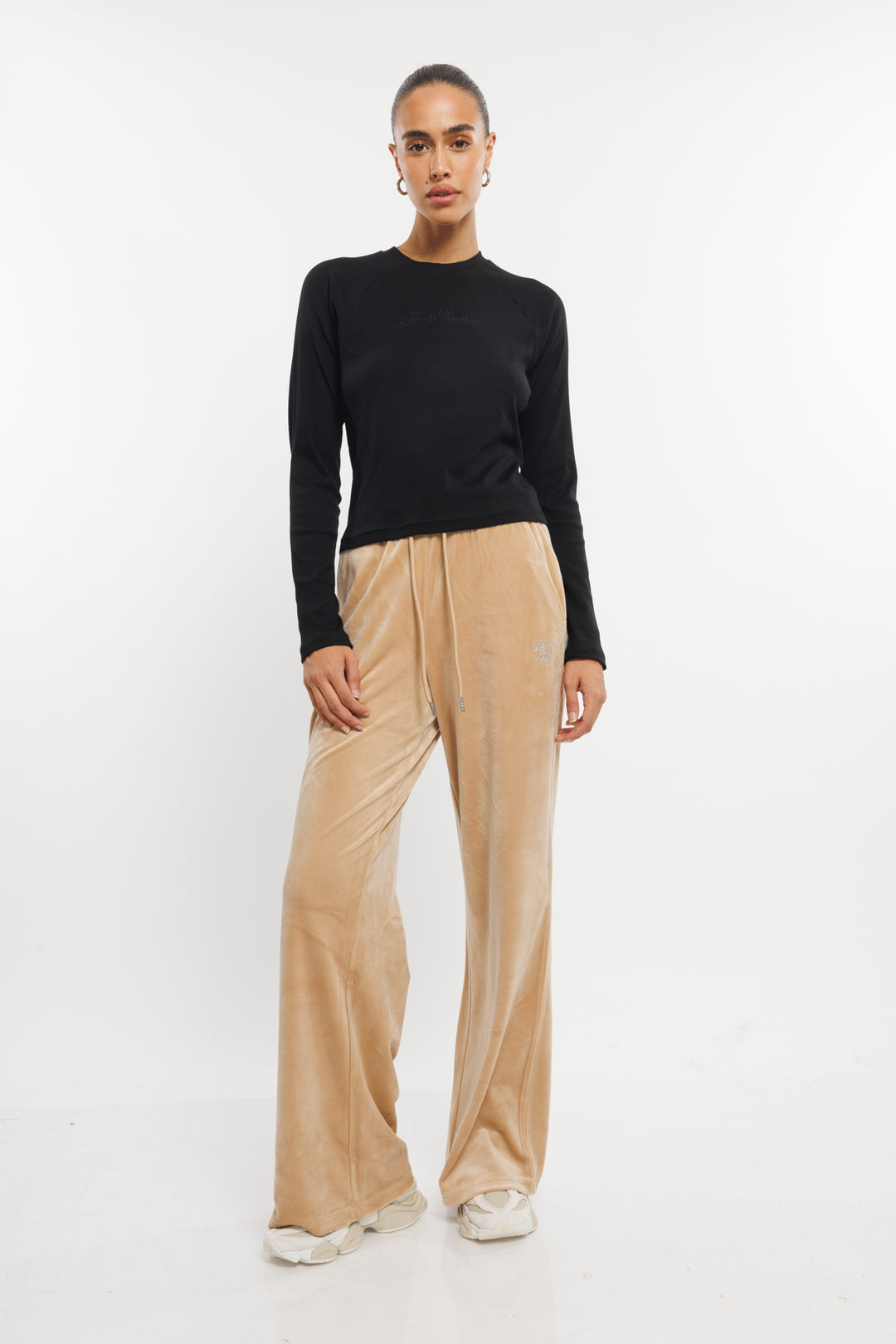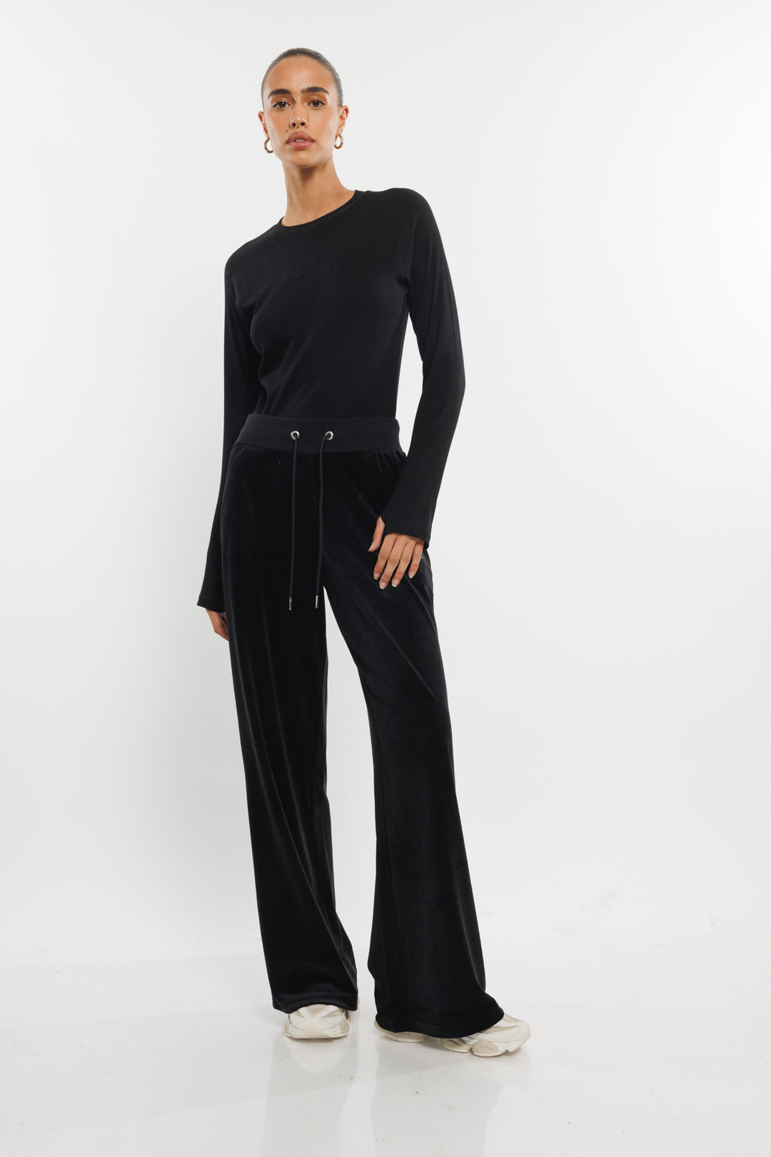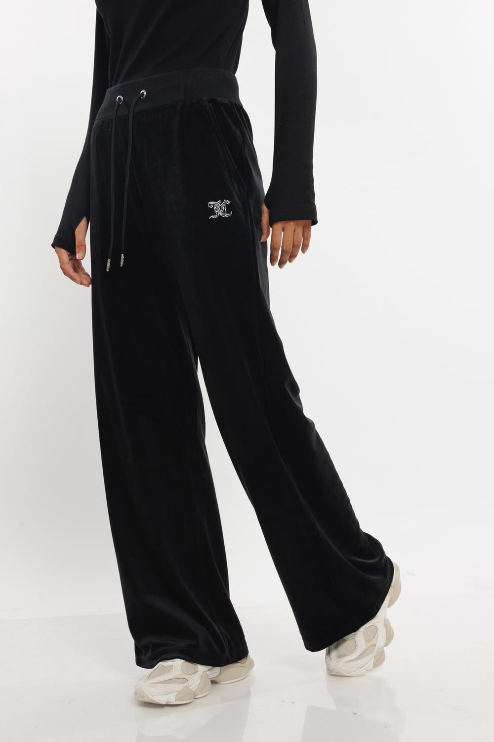 מכנסי טרנינג קטיפה W Fancy בצבע שחור