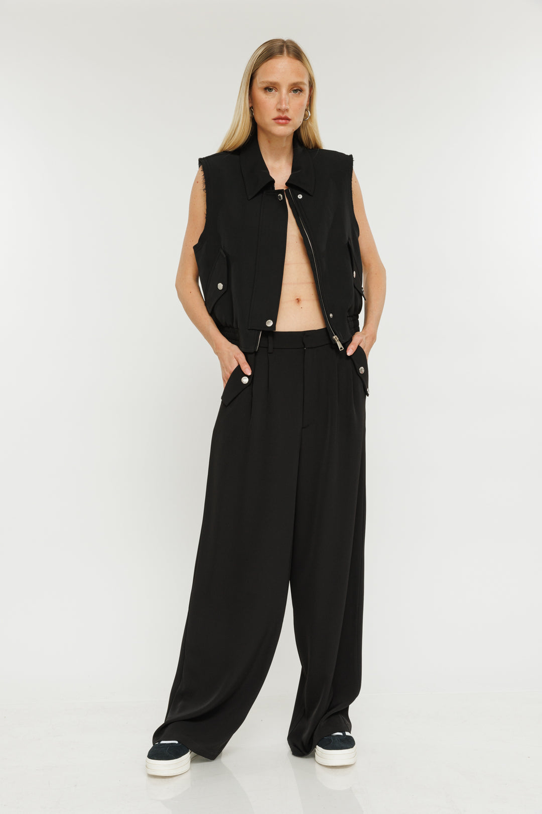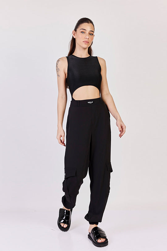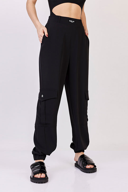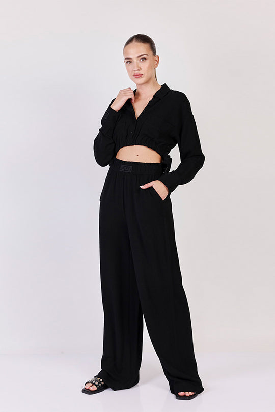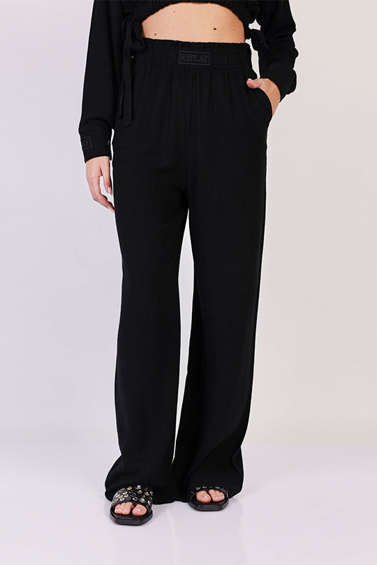 מכנסיים רחבים W בצבע שחור