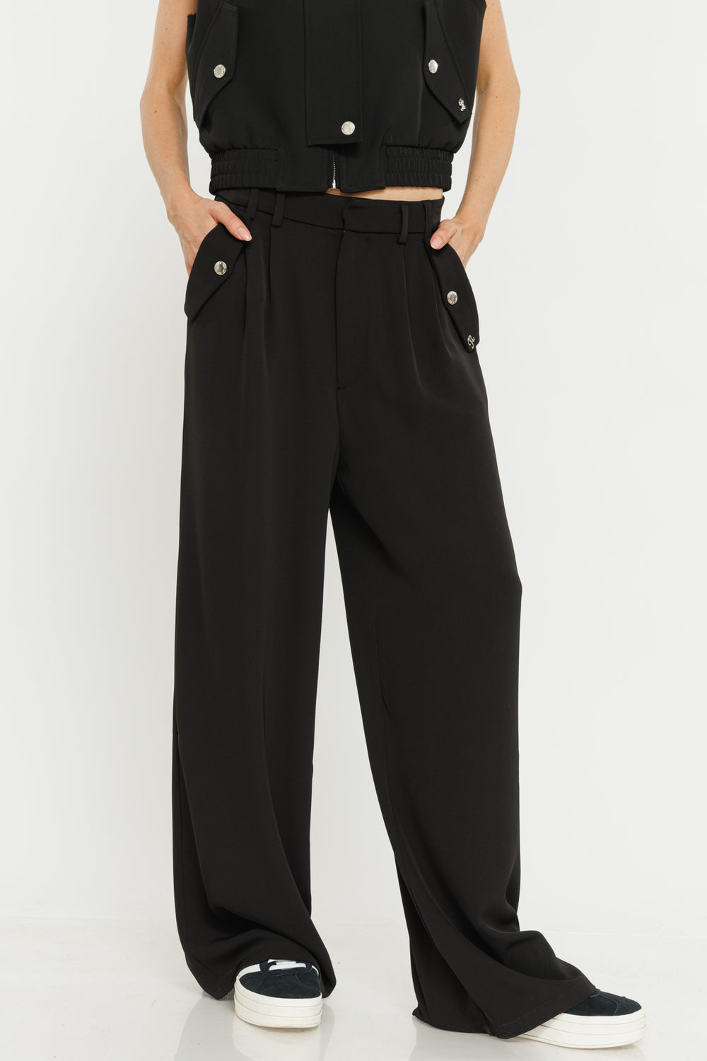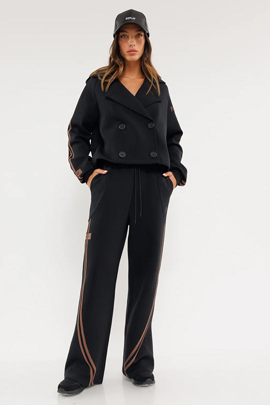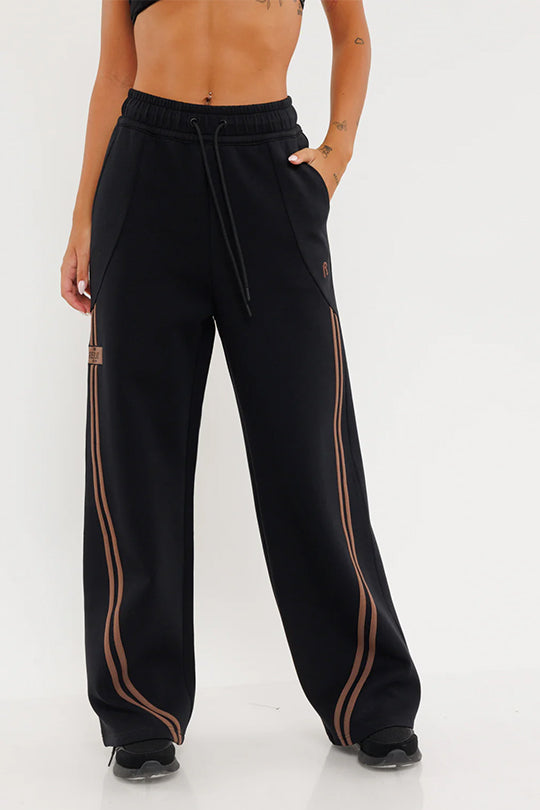מכנסיים רחבים עם פסי צד בגוון שחור