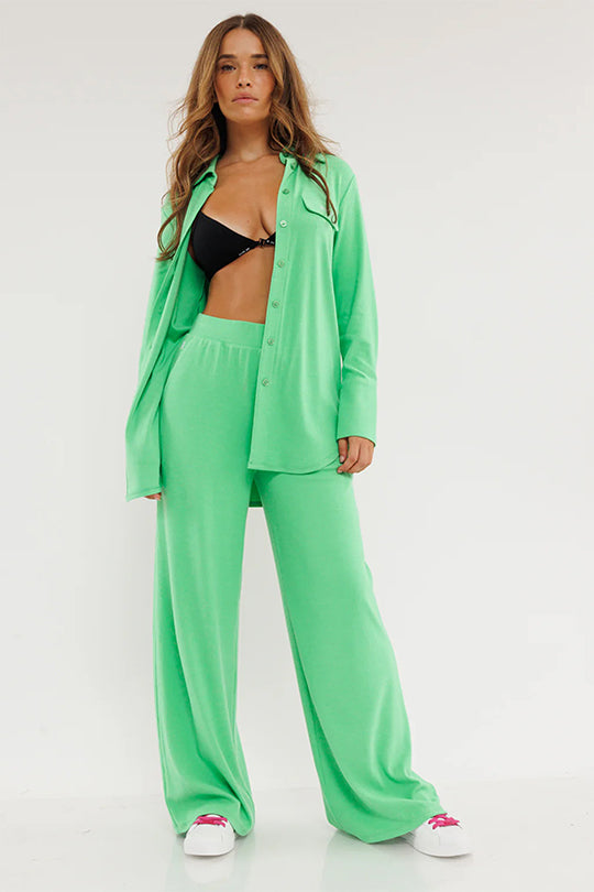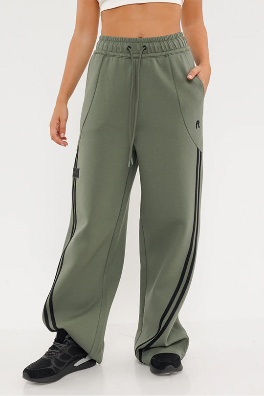 מכנסיים רחבים עם פסי צד בגוון ירוק