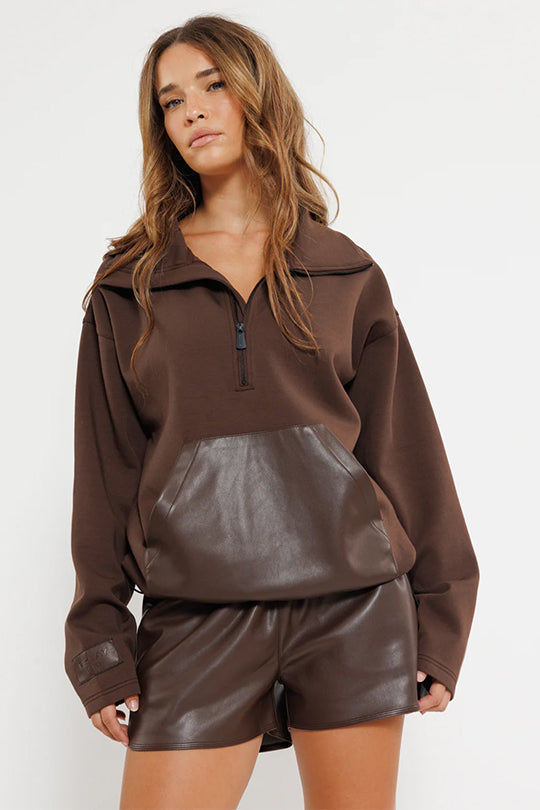 סווטשירט עם כיס קדמי בצבע חום