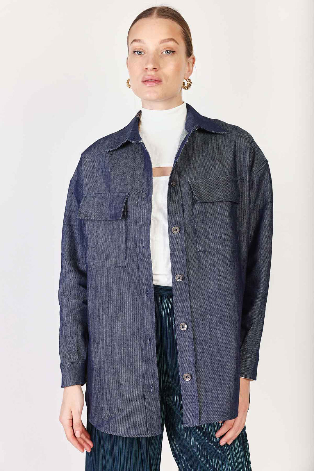 חולצת ג'קט Carla בצבע כחול ג'ינס