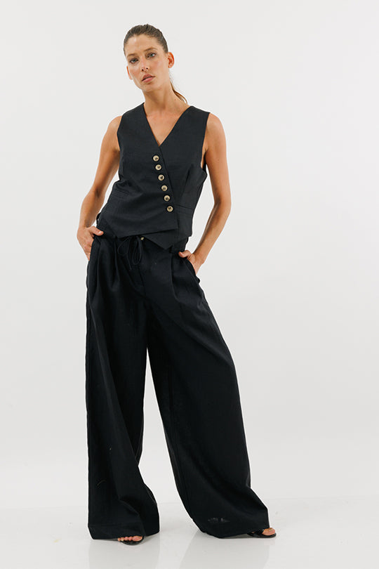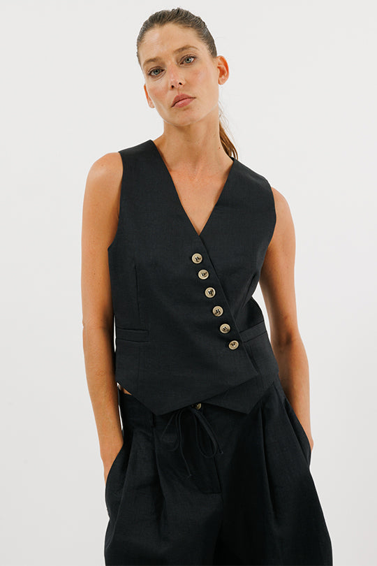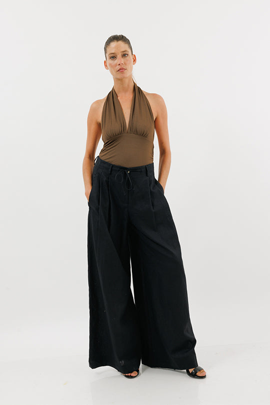 גופייה עם צווארון גבוה בצבע שחור - Razili Studio