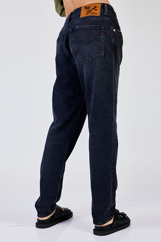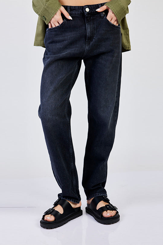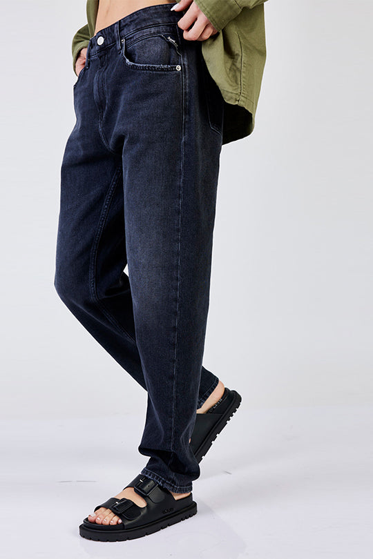 ג’ינס מדגם מרתי בגזרה משוחררת מעט. לג’ינס קיפול במכפלת שניתן לפתוח. נשים